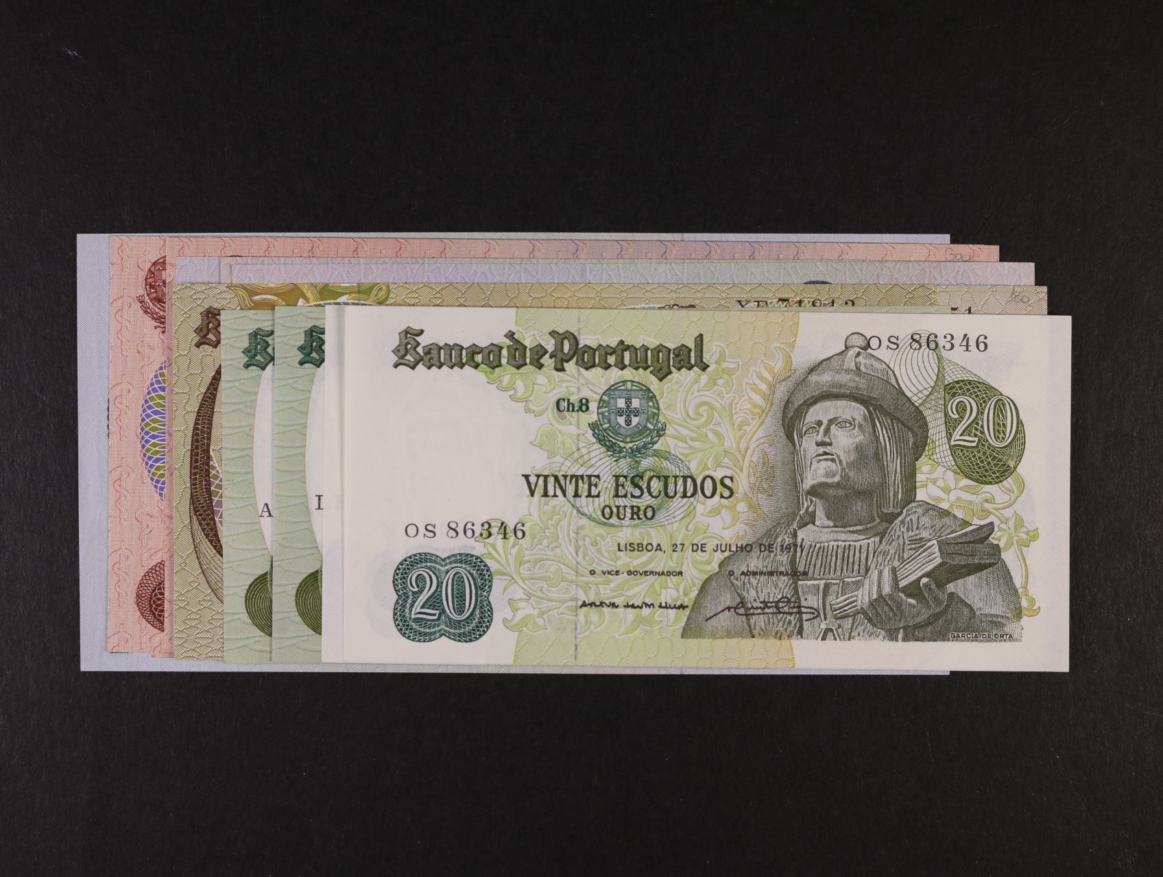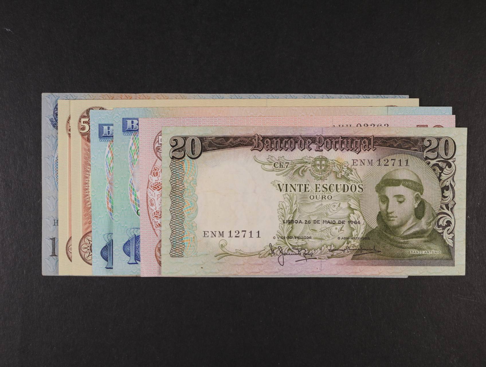 2417 20 Escudos 26.5.1964, 50 Escudos 28.2.1964, 100 Escudos 30.11.1965 (2x podpisy), 500 Escudos 25.1.1966, 6.9.1979, 1000 Escudos 19.5.1967, Pi. 167, 168, 169a, 170a, b, 172a, celkem 7ks 1600