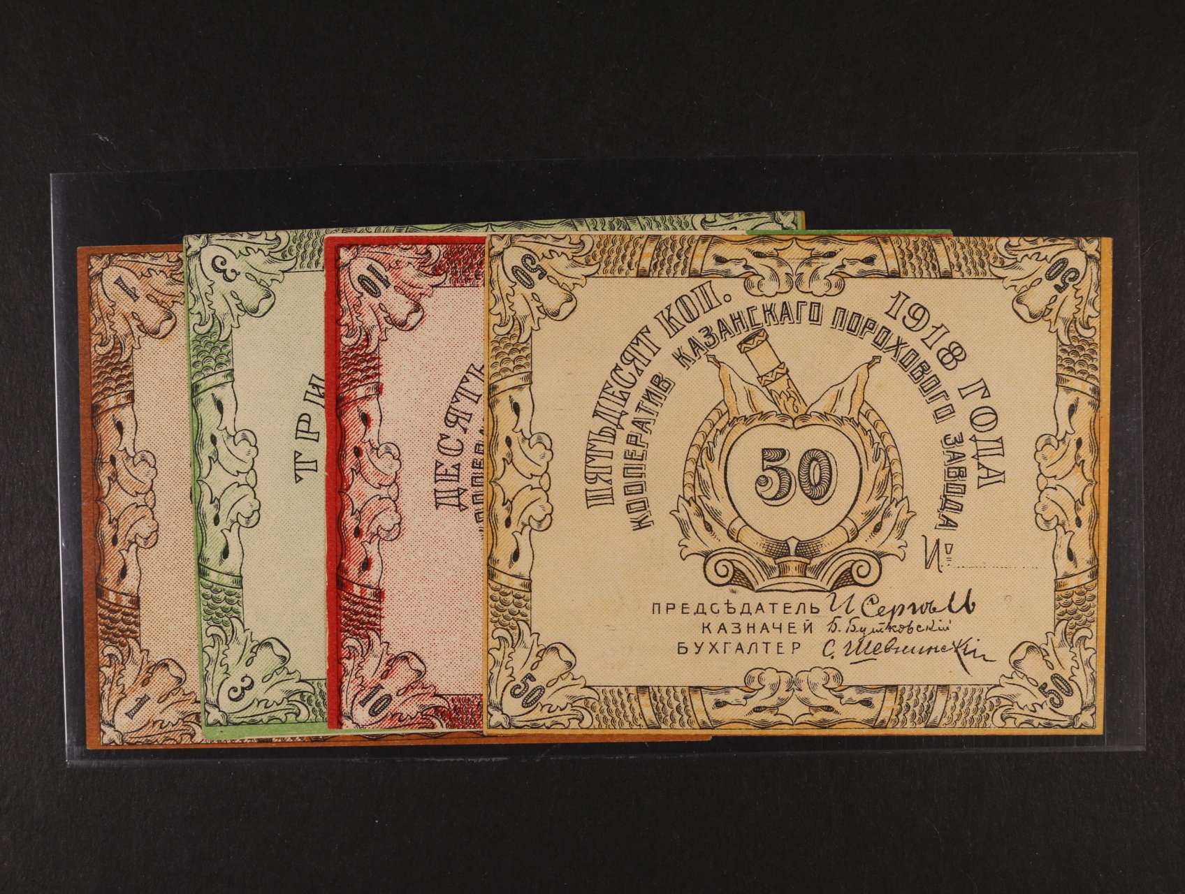 2495 Kazan: Kooperativ Kazanskago Porochovogo Zavoda 1, 3, 10, 50 Rubel 1918 (4 ks) 5000