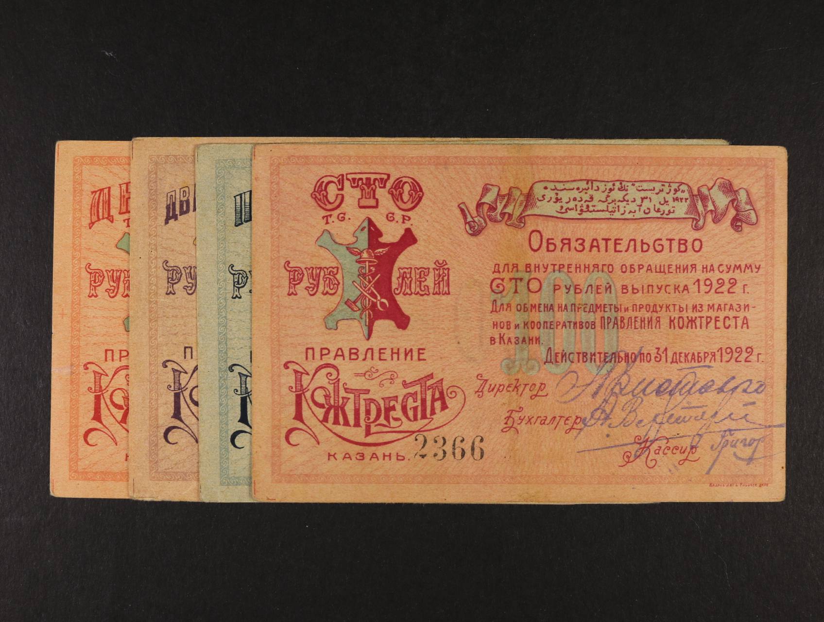 2496 zan: Pravlenie Kozhtresta, 10, 25, 50, 100 Rubel 1922 5000