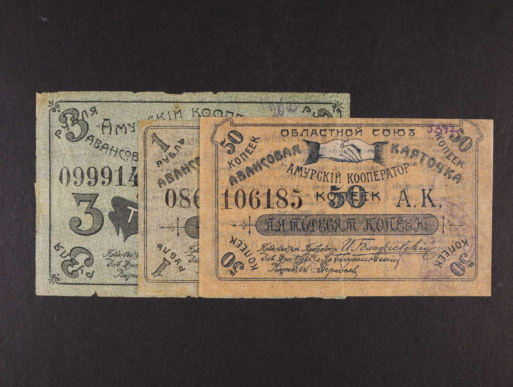 2497 Amurskij Kooperator. Oblastnoj Sojuz., 50 Kop., 1, 3 Rubel 1919 (3ks) 1700