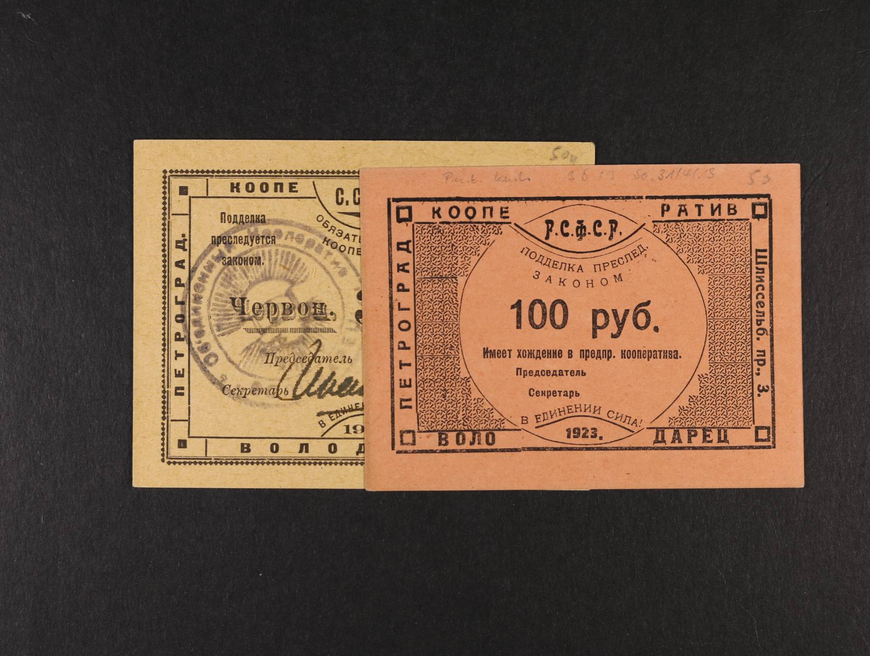 2498 Petrohrad, Kooperativ Volodarec 3, 100 Rubel 1923 1800