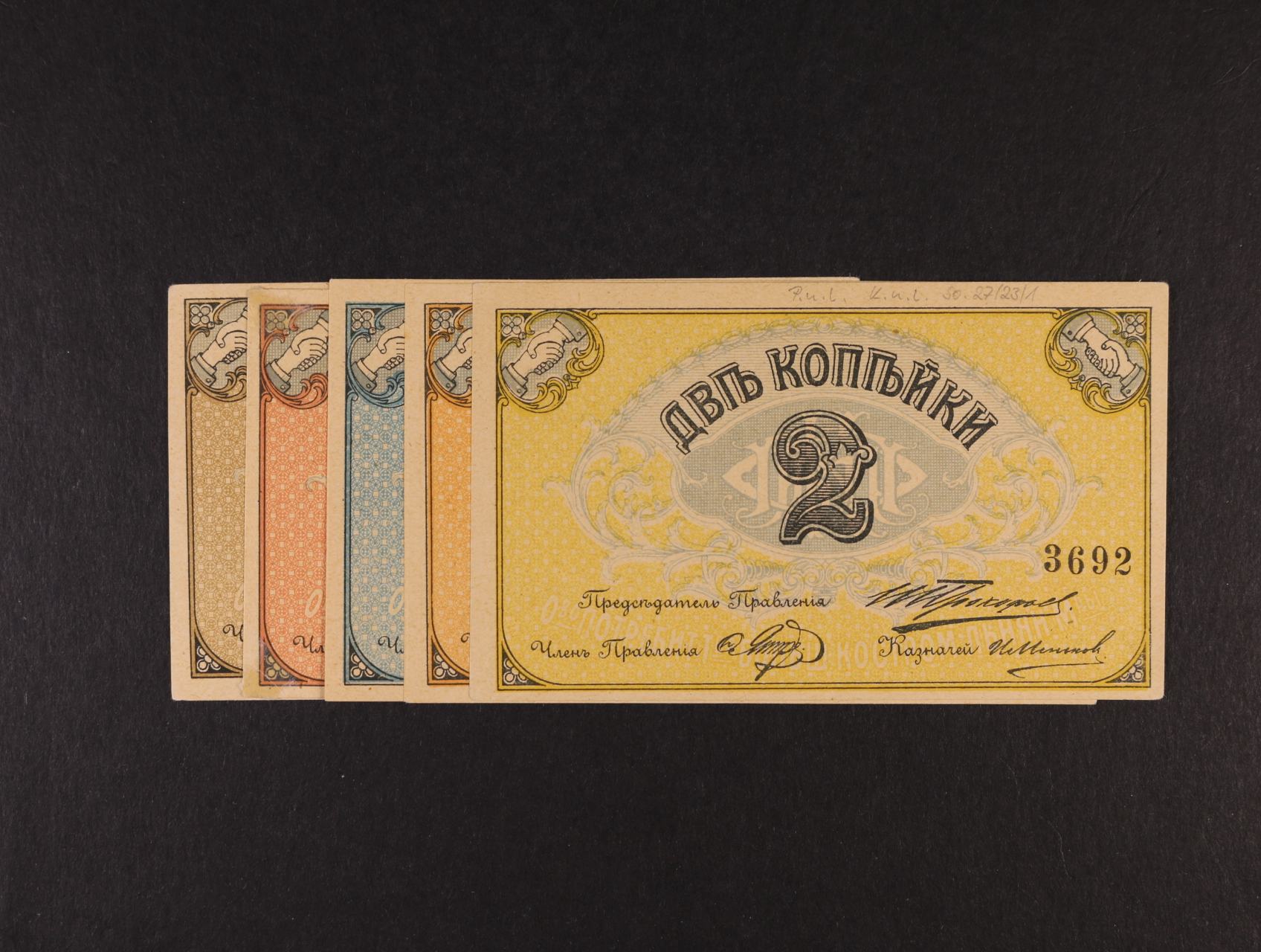 2499 Kostroma: Obshchestvo Potrebitelej Raboczych i Sluzhashchich, 2, 5, 10, 15, 20 Kop. b.d. (5 ks) 5000