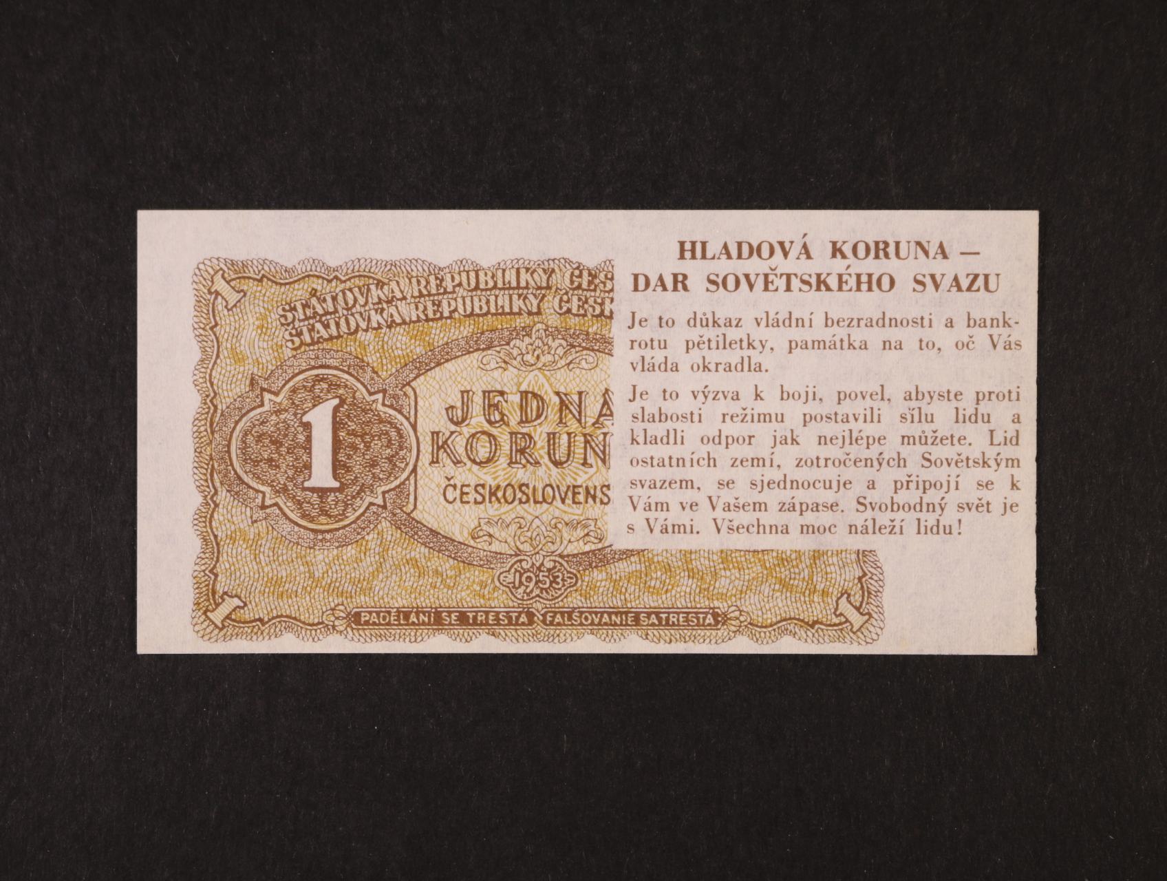 propagační 1 Kčs 1953 Hladová koruna - dar Sovětského Svazu