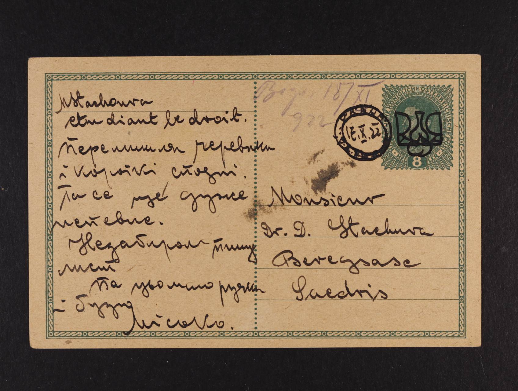 483 rak. KL 8h Karel s ručním přemalovaným ukrajinským znakem a ručním přepisem 18.11.22, odeslaný z Mukačeva 200
