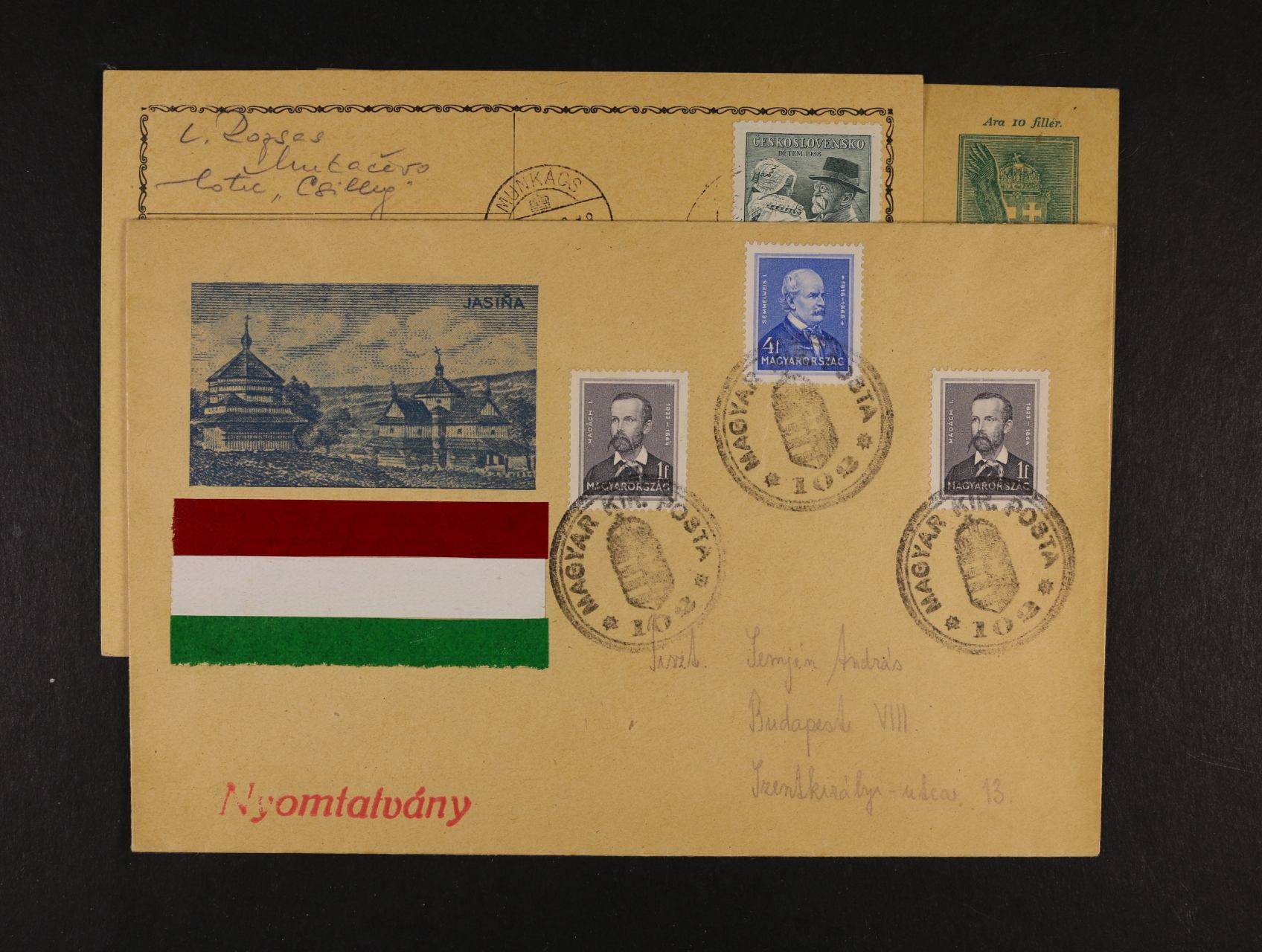 485 Maďarský zábor - sestava 3 ks celistvostí s raz. UNGVÁR, VISSZATÉRT 1938, MUNKÁCS 10.11.38 a obálka s přítiskem JASIŇA frank. maďarskými zn. a raz. MAGYAR KIR. POSTA 102, zajímavé 300