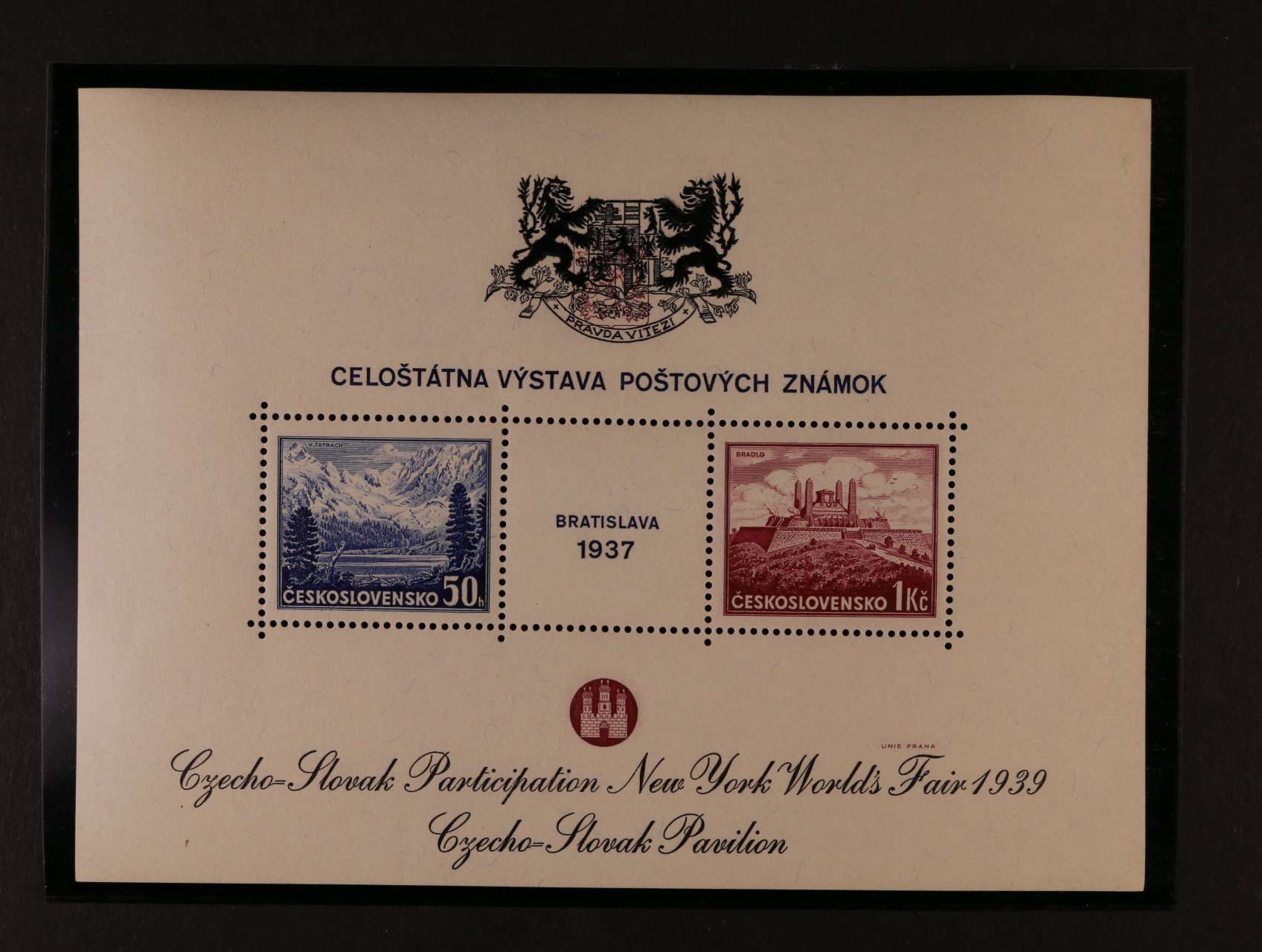 504 A č. 329/330 s černým přítiskem pro výstavu NEW YORK 1939, kat. cena 700 Kč 500