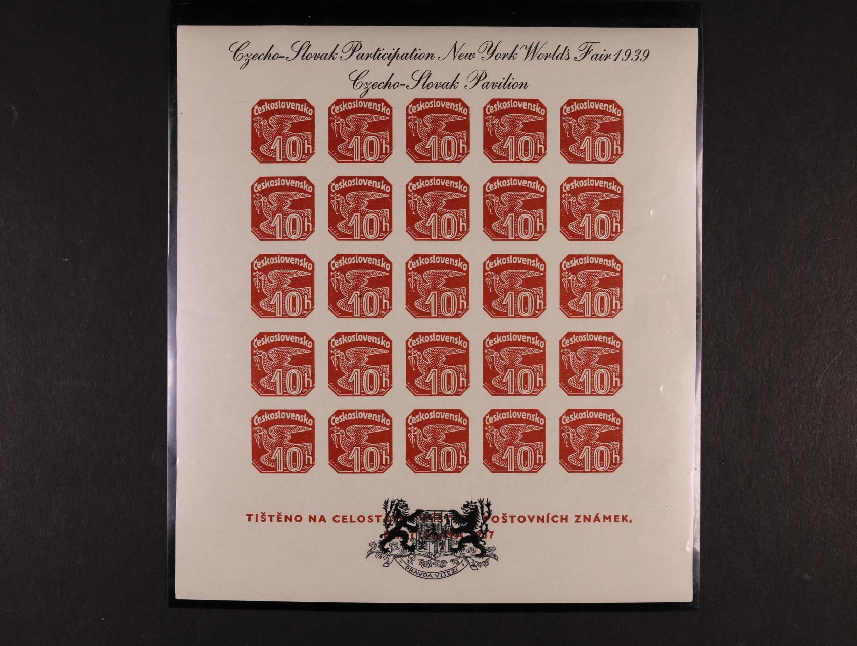 508 A č. 342/343 se zlatočerným přítiskem pro výstvu NEW YORK 1940 v původních destičkách 1000