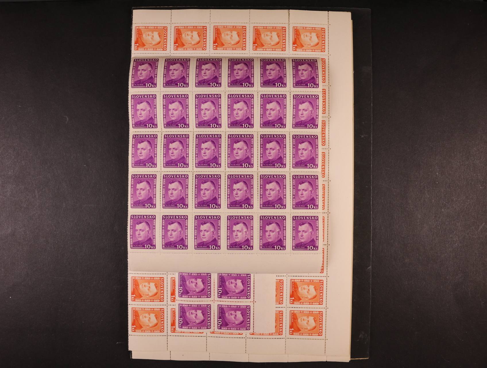 zn. č. 120 - 124 ve 100kusových arších, zn. 125 ve čtyřech 30ti-blocích a jednom 20ti-bloku, 300 EUR