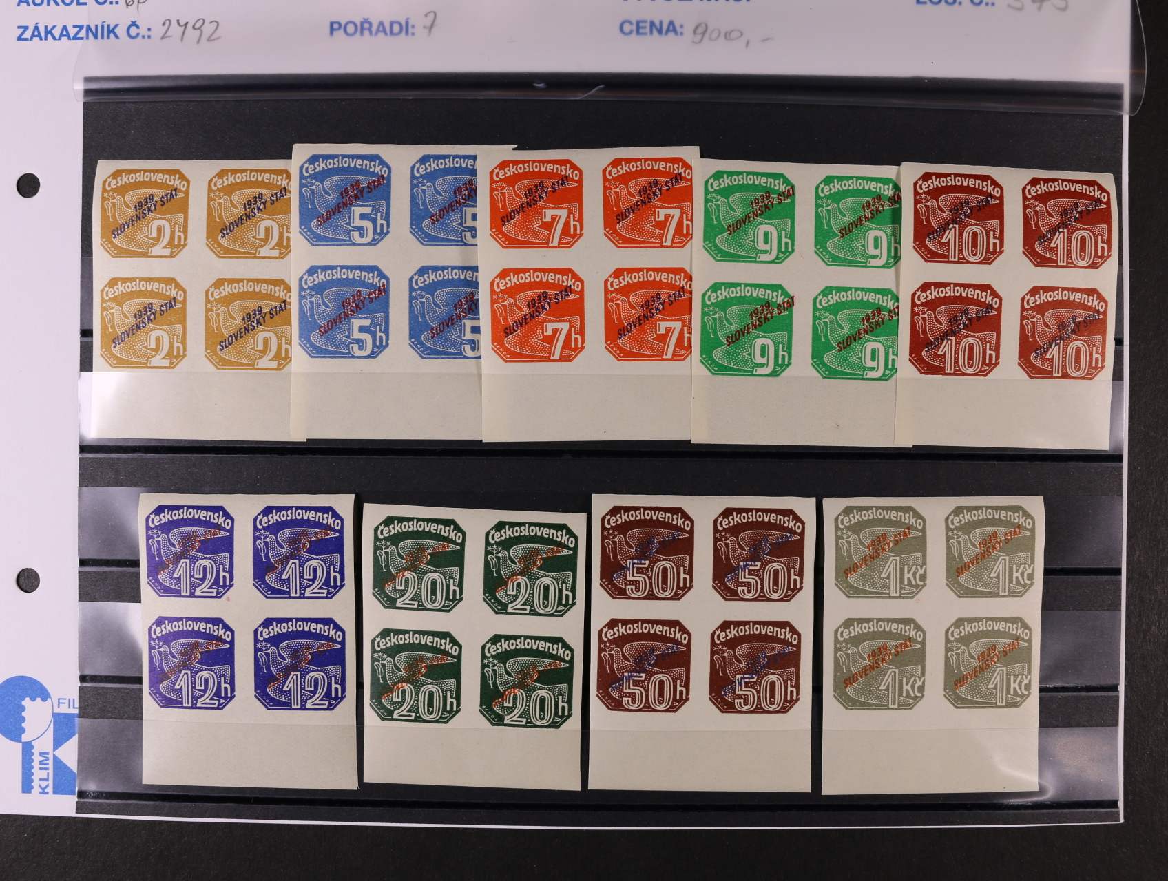 zn. NV č. 1 - NV 9 ve čtyřblocích se spodními okraji, zk. Müller, kat. cena cca 50 EUR