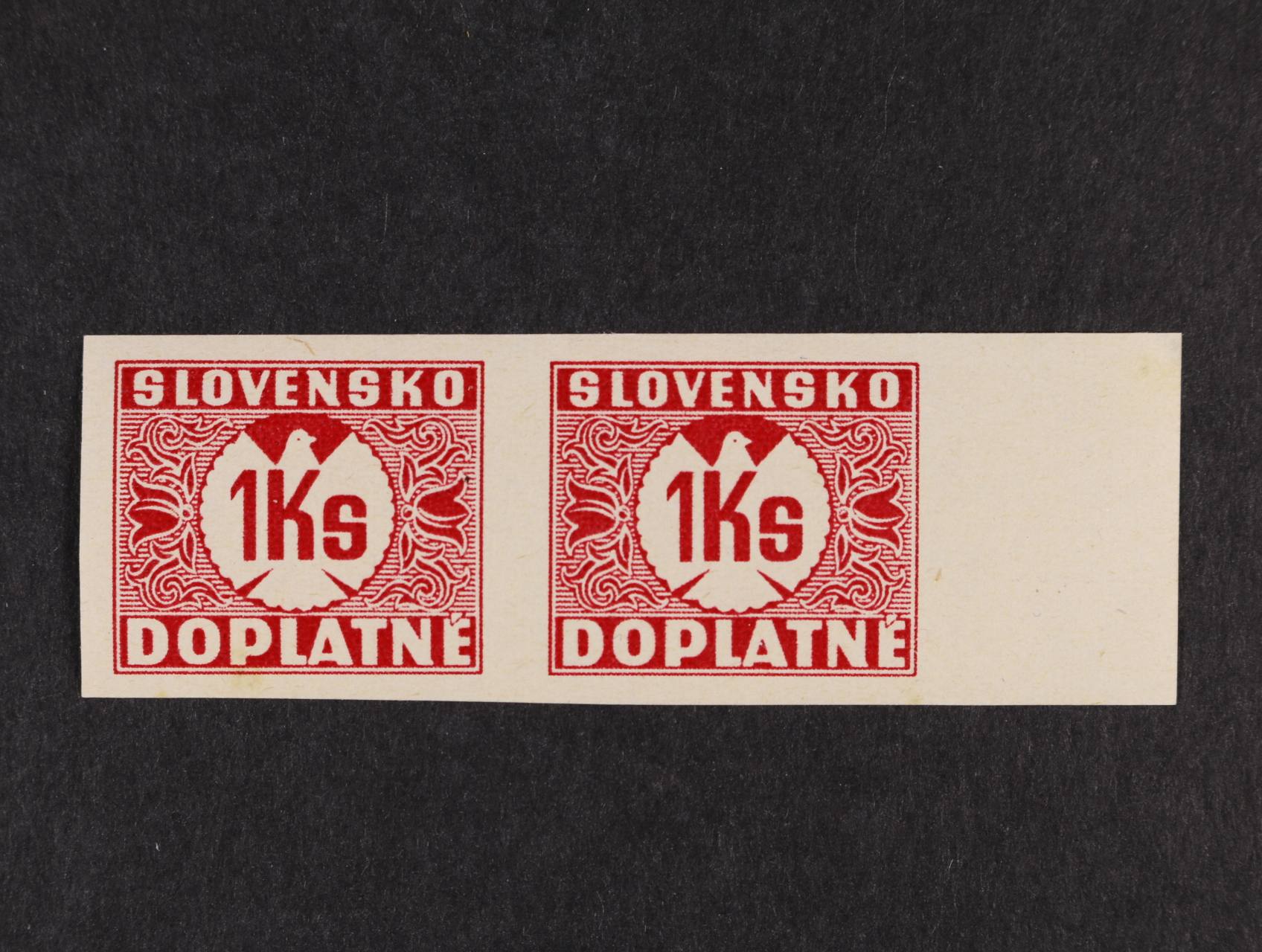 zn. NZ D č. 8 N doplatní 1Ks ve vodorovné dvoupásce s pravým okrajem, stříhaná, na lepu na dvou místech malé zahnědlé skvrnky, 160 EUR