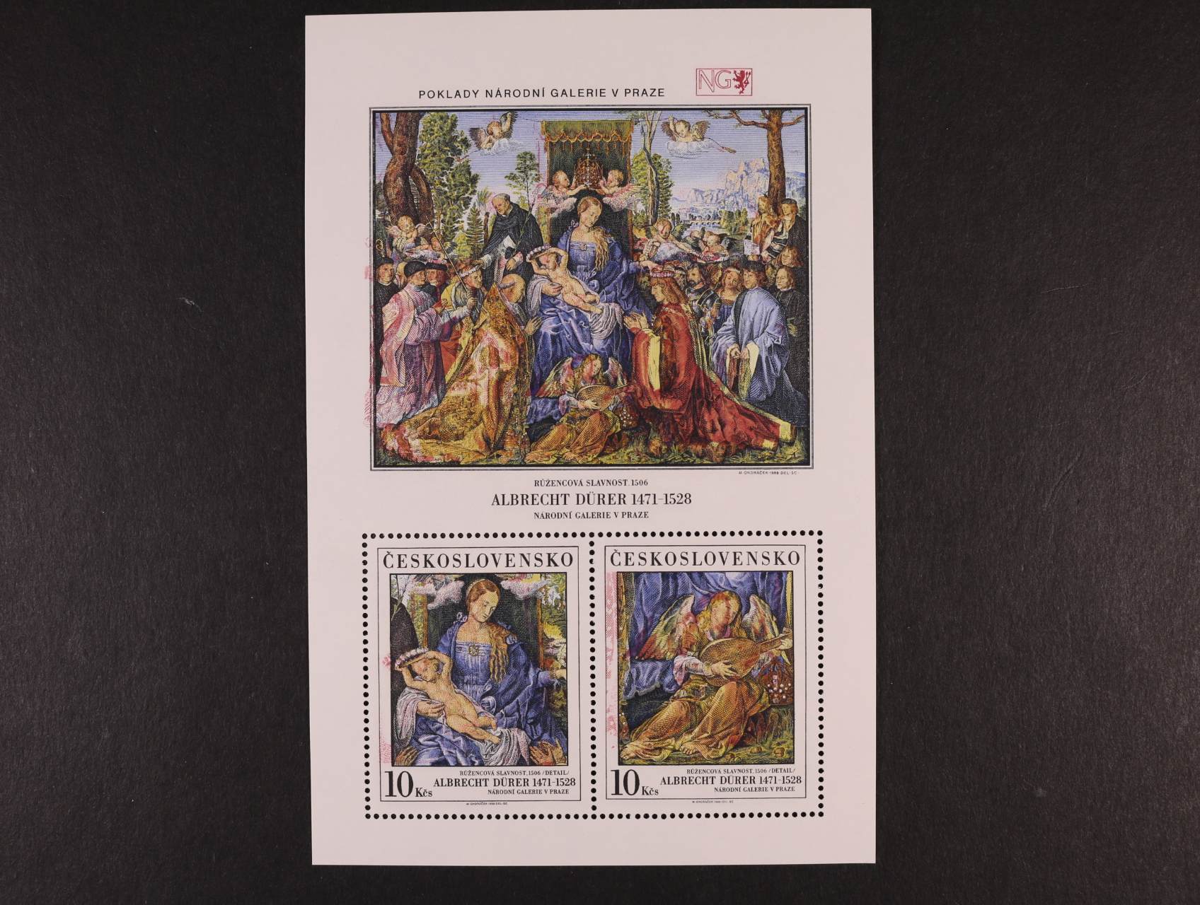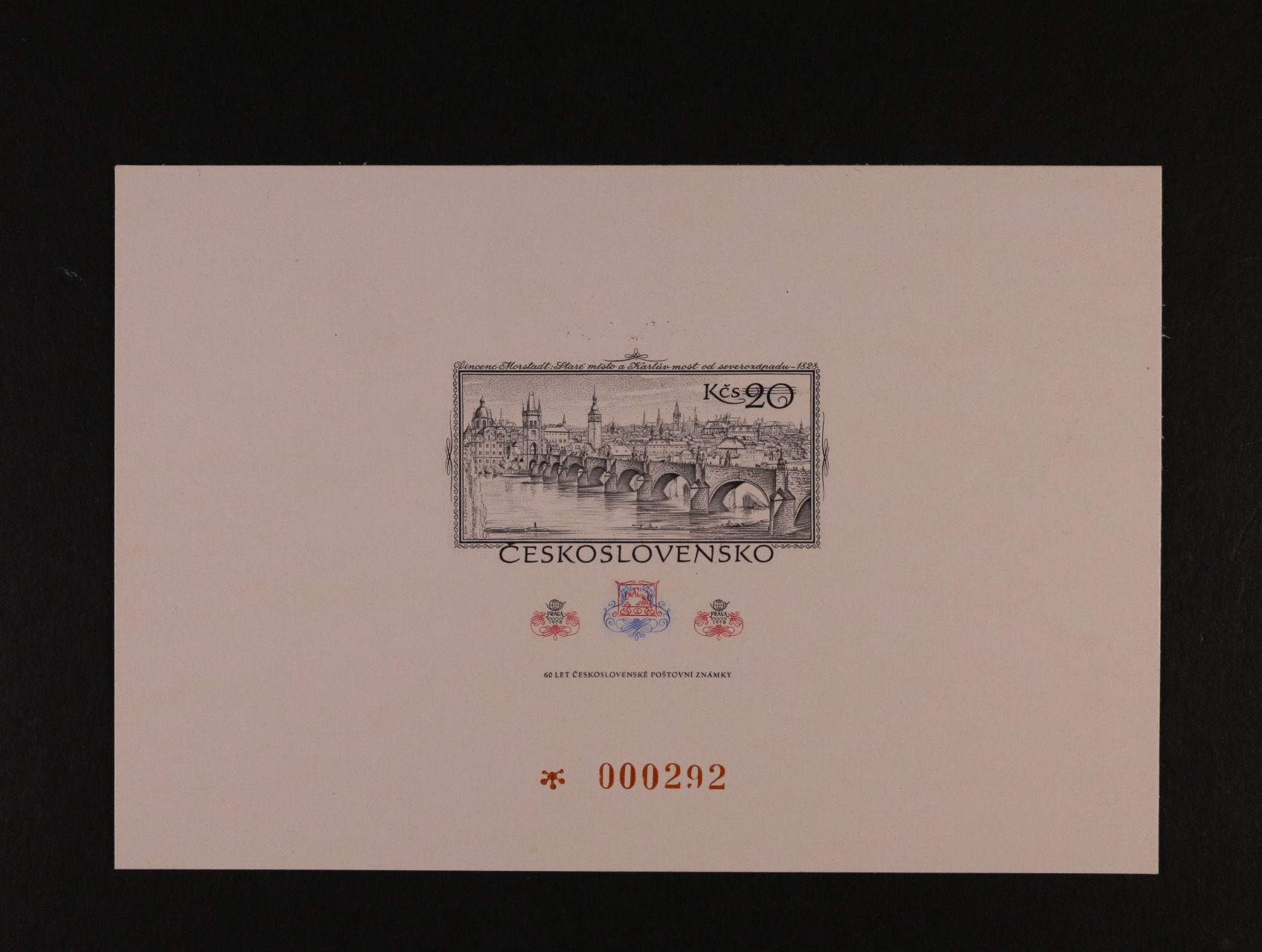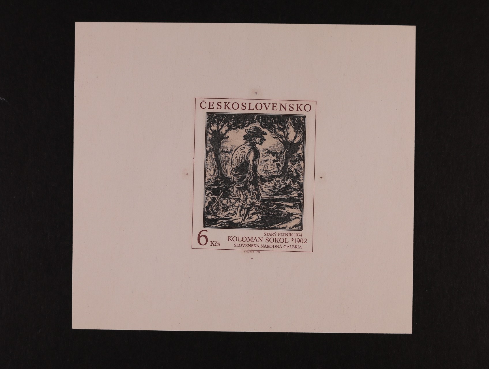 otisk orig. rytiny zn. č. 3025 na kousku karton. papíru v orig. barvách