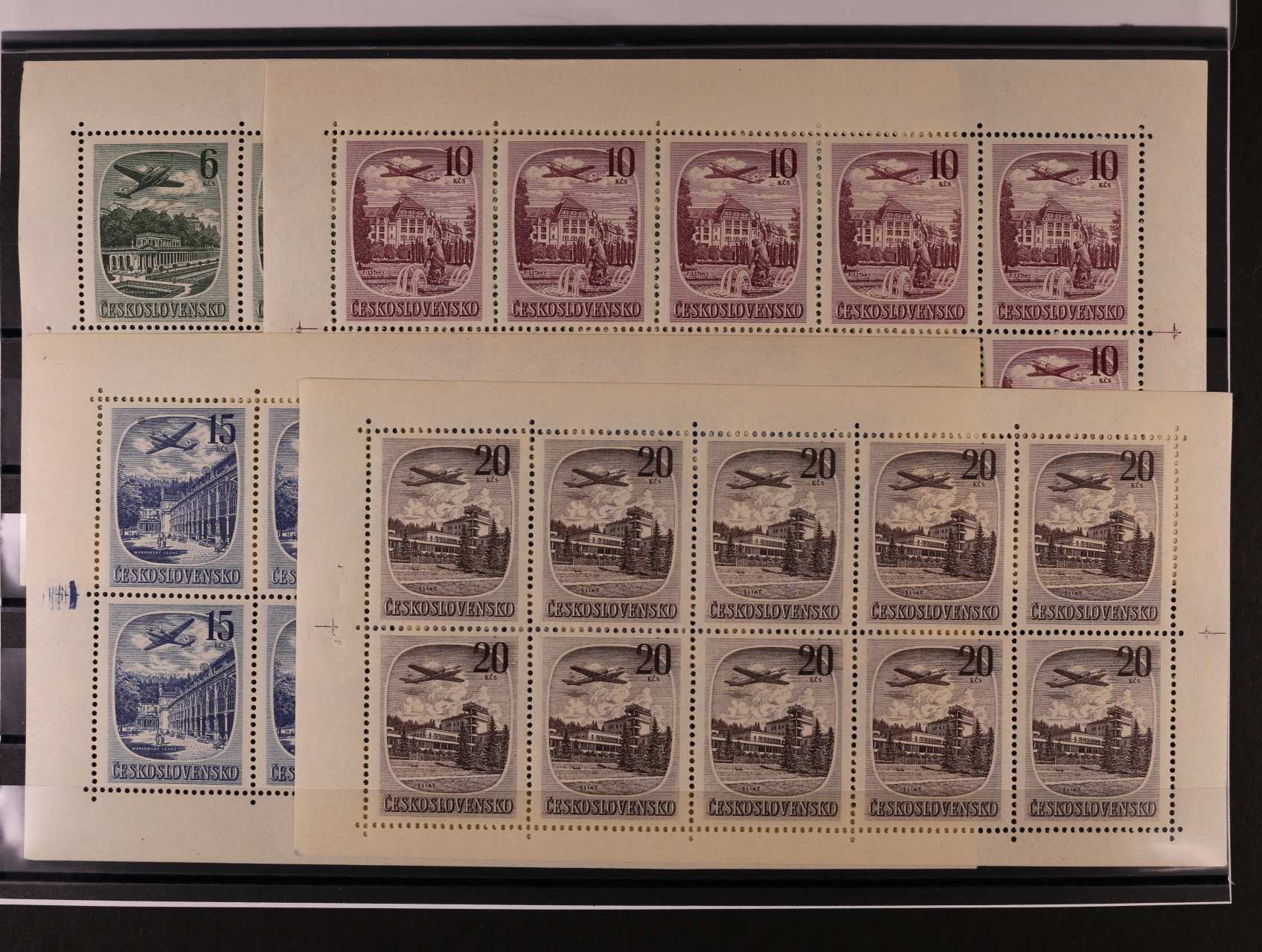 sestava SL 2909 s perf. otvorem vpravo a bez perf. otvoru vpravo + SL 2912 s perf. otvorem vpravo a bez perf. otvoru vpravo, SL 2912 bez svislé perf. vlevo a s perf. otvorem vpravo + zkompletovaný známkový sešitek, velmi zajímavá sestava, kat. cena cca 4500 Kč