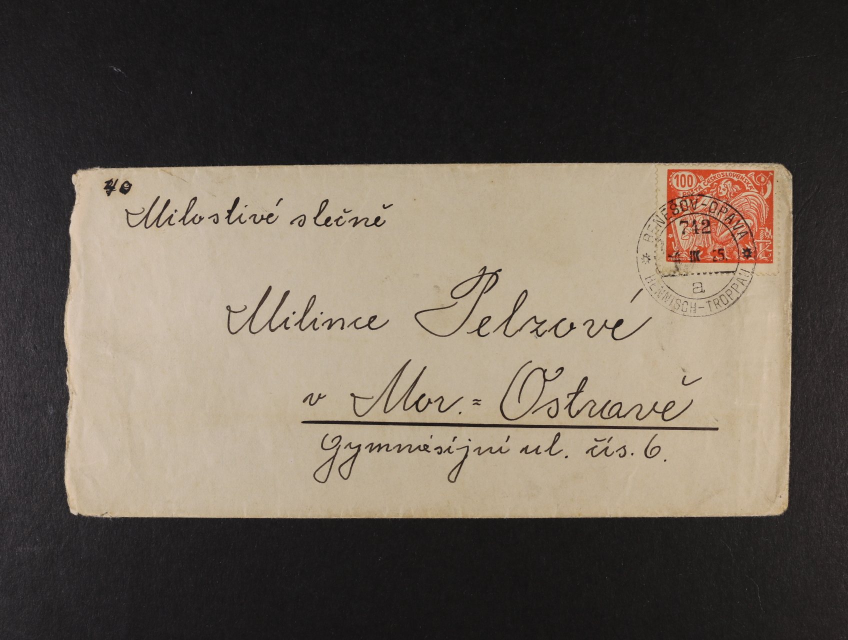 Belgie / Belgium Bosna a Hercegovina / Bosnia - Herzegovina Bulharsko / Bulgaria Celiny ČSR I / Postal stationery Celiny od r. 1945 / Postal stationery after 1945 Červený kříž 1920 / The Red cross Česká republika / Czech Republic Československo od r. 1945 celistvosti / CS after 1945 entires Československo od roku 1945 / CS after 1945 Chorvatsko / Croatia Dánsko / Denmark Doplatní, OT a Doruční / Postage due and Printed matter Exilové - výstavní aršíky Finsko / Finland Fiume Francie / France Gibraltar / Gibraltar Historické dokumenty a mapy / Historical Documents and Old Maps Holandsko / Nerherlands Holubice 1920 / Dove Hospodářství a věda 1920 a 1923 / Agiculture and science 1920 and 1923 Hradčany - Vzorce, návrhy, zkusmé tisky a ostatní Hradčany 1918 Hradčany celistvosti / entires Husita 1920 / The Hussite Island / Iceland Itálie / Italy Jubilejní 1928 - 10. výročí ČSR Judaika / Judaica Jugoslávie / Yugoslavia Koncentrační tábory a věznice, tábory / Concentration Camps, Camps Legionářské 1919 / Legionnaire 1919 Letecké 1918 - 1939 / Airmail Letecké 1945 - 1992 / Airmail Lichtenštejnsko / Lichtenstein Literatura / Literature Litva / Lithuania Lotyšsko / Latvia Maďarsko / Hungary Maďarský zábor Slovenska / Hungarian occupation of Slovakia Masaryk 1920 Masaryk 1923 - 1926 Monako / Monaco Německo polní pošta / Germany field post Německo - Berlín / Germany Berlin Německo - Danzig / Germany Danzig Německo - NDR / GDR Německo - obsazené území / German occupation Německo - okupační zóny / German occupation zone Německo - pošta v zahraničí / Germany post abroad Německo - Staroněmecké státy / German States Německo 1870 - 1945 / Germany 1870 - 1945 Německo 1870 - 1945 celistvosti / Germany entires Německo SRN / GFR Novinové / Newspaper Ostatní / Others Ostatní do roku 1939 / Others Ostatní od roku 1929 / Next from 1929 Ostatní od roku 1929 celistvosti / Next from 1929 entires Osvobozená republika 1920 / The Liberated Republic Perfiny Podkarpatská Rus 1918 - 39 / Transcarpathia 1918 - 39 Podpisy a autogramy Polní pošta / Field post Polsko / Poland Pošta Československá 1919 Pošta Československá 1919 celistvosti / entires Poštovny Praha - Tatry 1926 Předběžné Protektorát Č a M. celiny / B. a M. postal stationery Protektorát Č. a M. / Bohemia a Moravia Protektorát Č. a M. celistvosti / B. a M. entires Protektorát Č. a M. polní pošta / B. a M. Field post Protichůdné dvojice / téte-béche Provizorní razítka po r.1945 Rakousko - Lombardsko Benátsko Rakousko - pošta v Levantě / Austria post in Levante Rakousko - předznámkové období / Austria prestamp period Rakousko 1850 - 1918 / Austria from 1850 to 1918 Rakousko 1850 - 1918 celistvosti / Austria from 1850 to 1918, entires Rakousko celiny / Austria Postal stationery Rakousko I. republika 1918 - 45 / Austria republic 1918 - 45 Rakousko II. republika od roku 1945 / Austria republic from 1945 Rakousko lodní pošta / Austria seapost Rakousko polní pošta / Austria field post Rakousko poštovní formuláře / Austria postal form Razítka vlakové pošty Revoluční přetisky 1918 / Revolution overprints 1918 Revoluční přetisky a vydání / Revolution overprints 1945 Rumunsko / Romania Rusko a SSSR / Russia and USSR Různé / Various San Marino / San Marino Sbírky / Collections Skautské / Scout issue Slovenská republika / Slovak Republic Slovenská republika celiny / SR postal stationery Slovensko 1939 - 45 / Slovakia 1939 - 45 Slovensko 1939 - 45 celistvosti / Slovakia entires SO 1920 Souběžné Španělsko / Spain Spěšné / Special delivery Sudety / Sudetenland Švédsko / Sweden Švýcarsko / Switzerland Turecko / Turkey Vatikán / Vatican Velká Británie / Great Britain ZÁMOŘÍ / OVERSEAS Zeppelinová a Katapultová pošta / Zeppelin and Catapult Mails