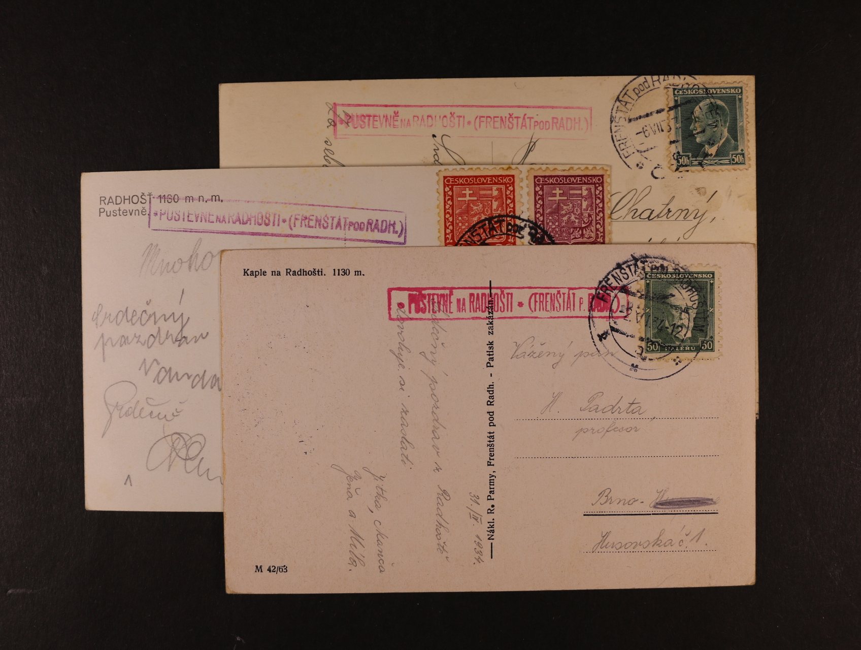 672 ČSR I - sestava 4 ks celistvostí s různými rámeč. raz. PUSTEVNĚ NA RADHOŠTI, zajímavé 300