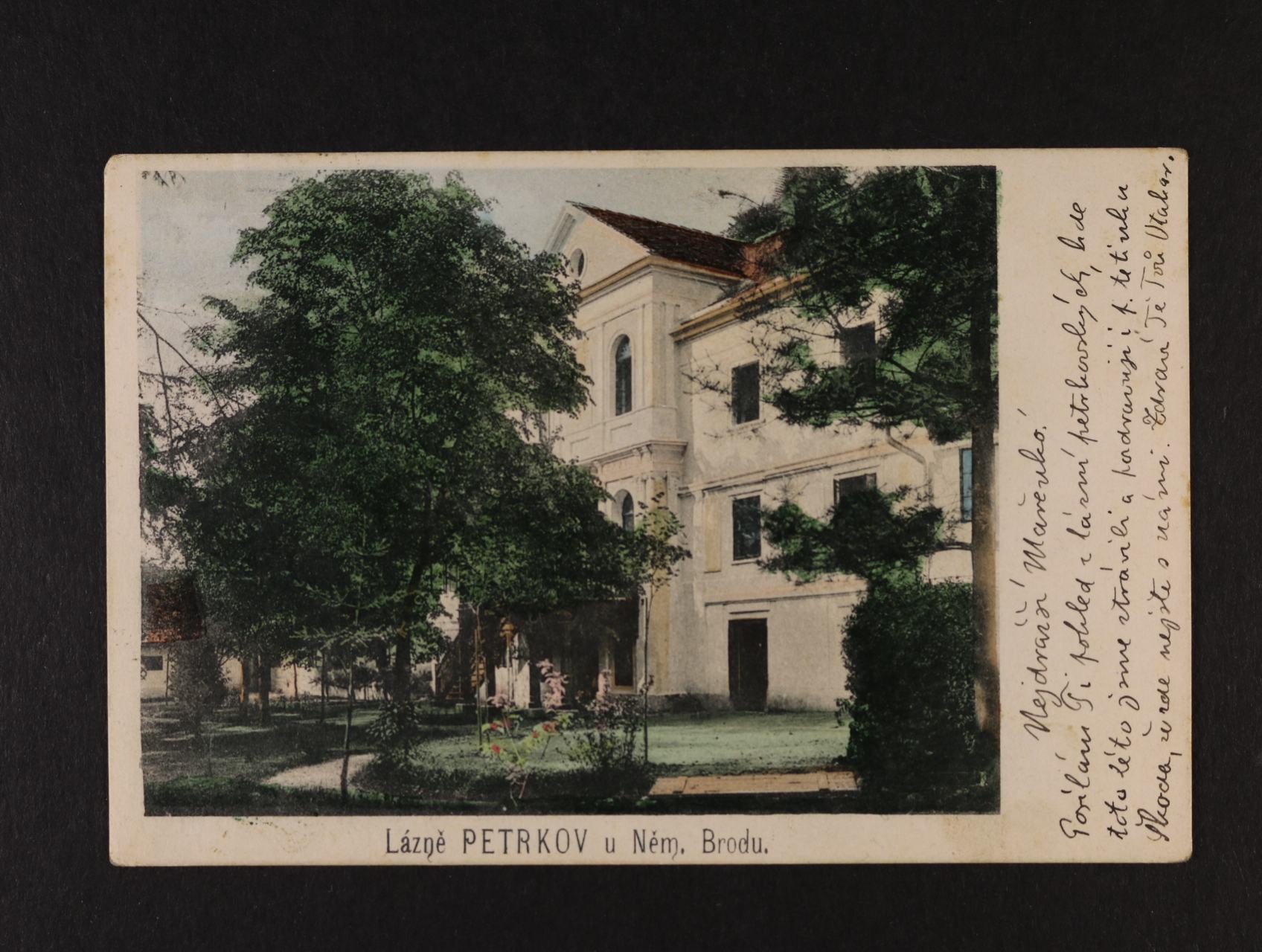 Lázně Petrkov, okr. Havl. Brod - barevná pohlednice, použitá 1904