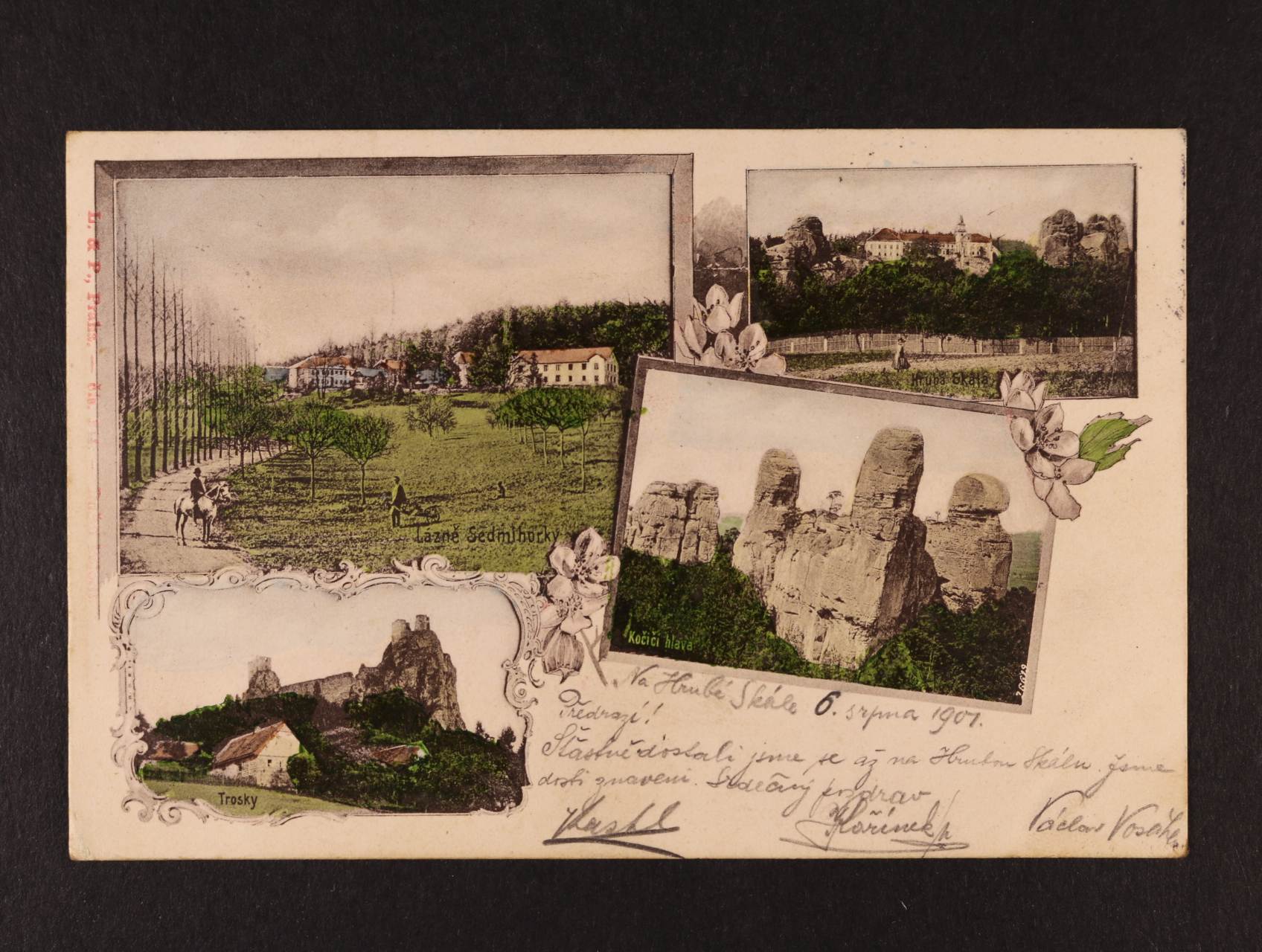 Lázně Sedmihorky, okr. Semily - bar. čtyřokénková pohlednice, použitá 1901