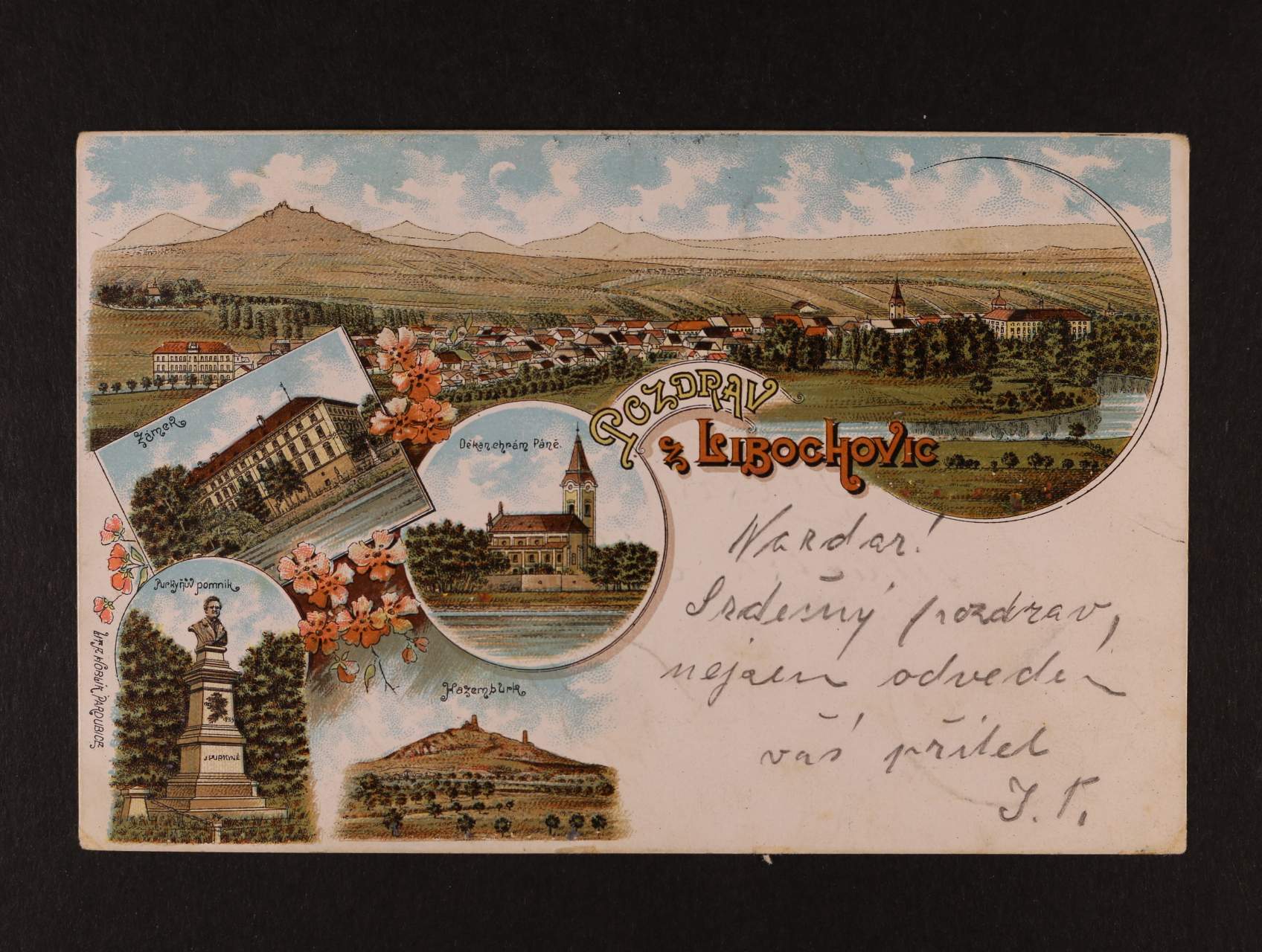 Libochovice - bar- litograf. koláž, dl. adresa, použitá, dobrá kvalita