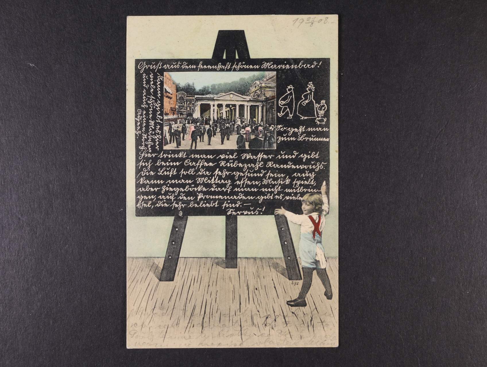 Mariánské Lázně - bar. koláž školní tabule, použitá, dobrá kvalita