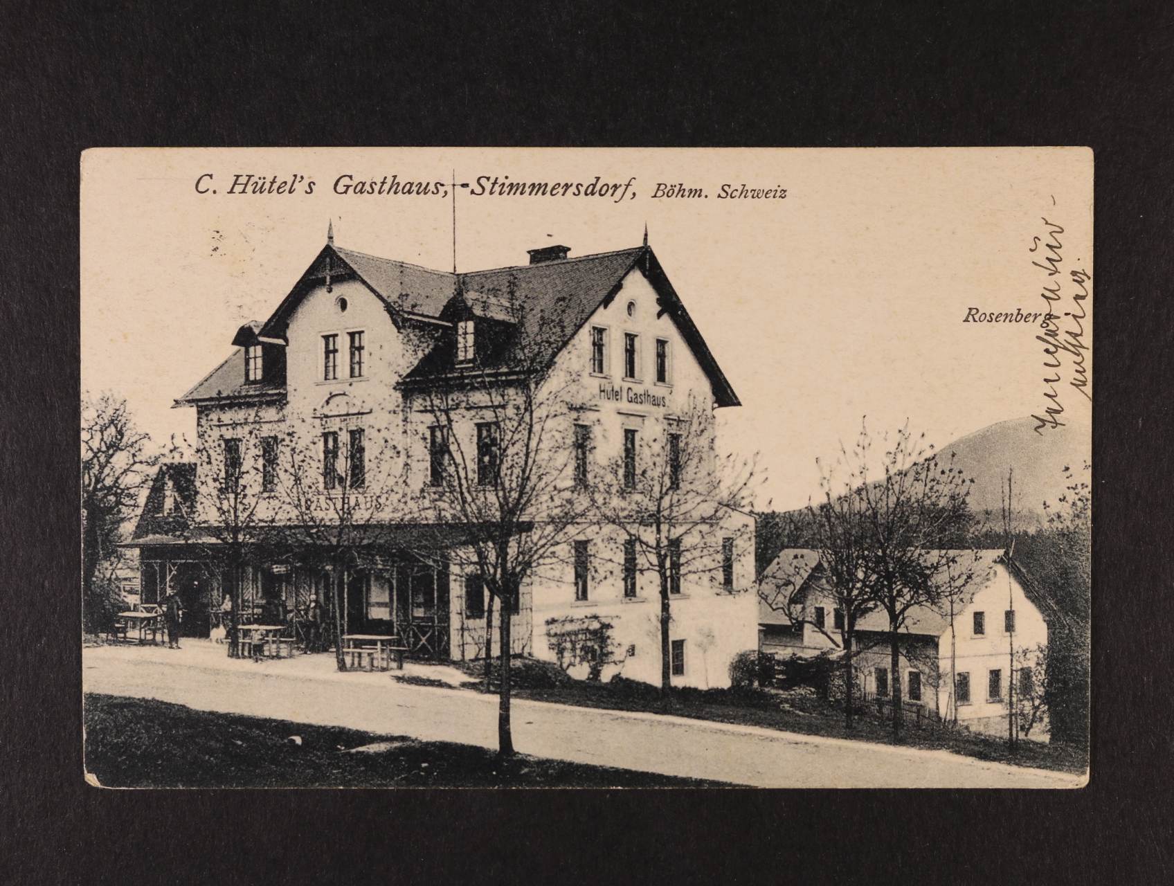 Mezná-Hřensko, okr. Děčín - jednobar. pohlednice, použitá 1928, hotel a restaurace