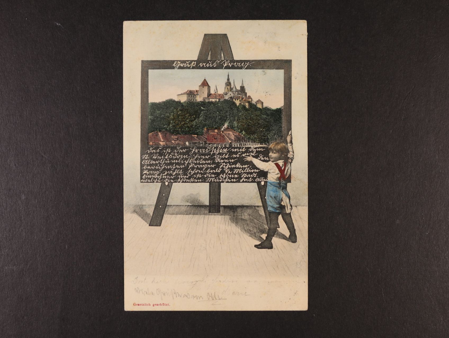 746 Praha, 16 ks. bar. pohlednic, neprošlé, dlouhá adresa 800