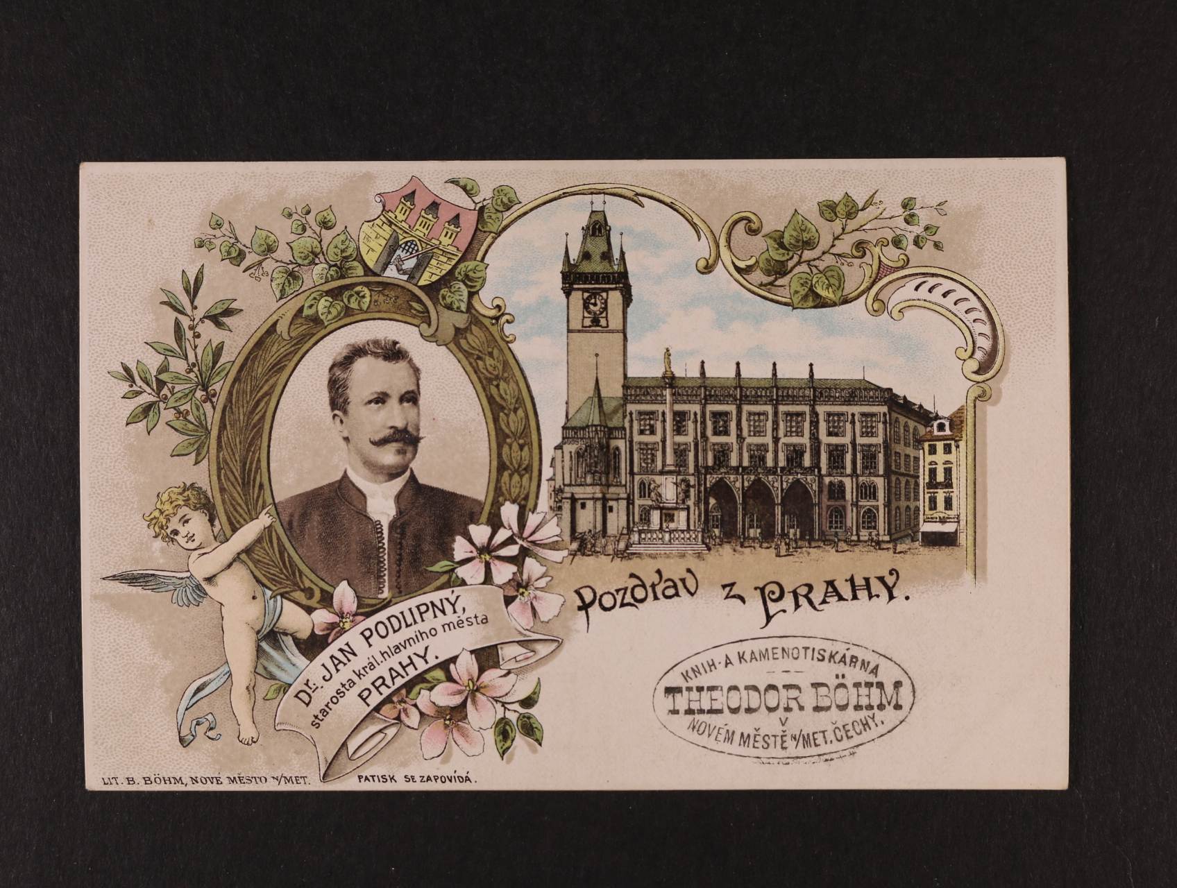 743 Praha - bar. litograf. koláž, dl. adresa, nepoužitá, dobrá kvalita 200