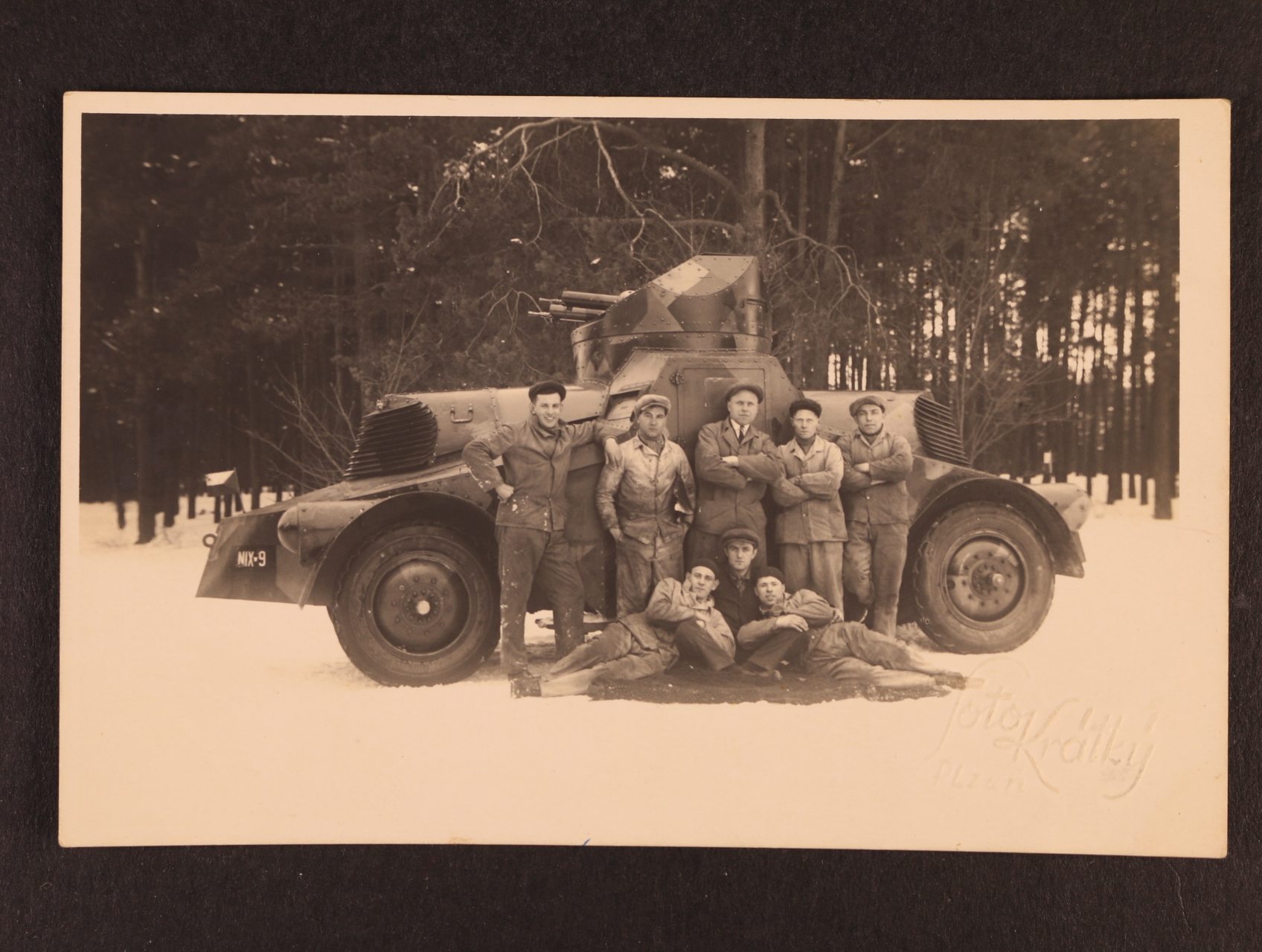 Vojenské - jednobar. fotopohlednice obrněný vůz PA II (želva) se slepotiskem firmy Foto Krátký Plzeň, nepoužitá, zajímavé
