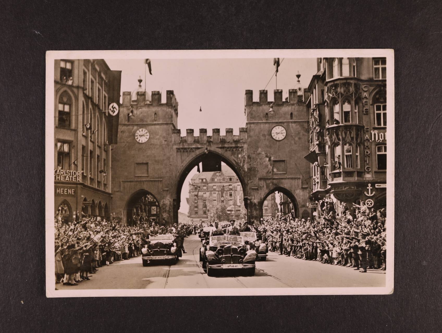 jednobar. fotopohlednice zachycující průjezd kolony Mnichovem