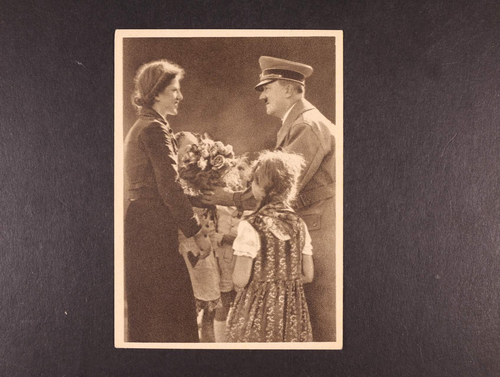jednobar. fotopohlednice s A. H. v uniformě, na zadní str. pam. raz.
