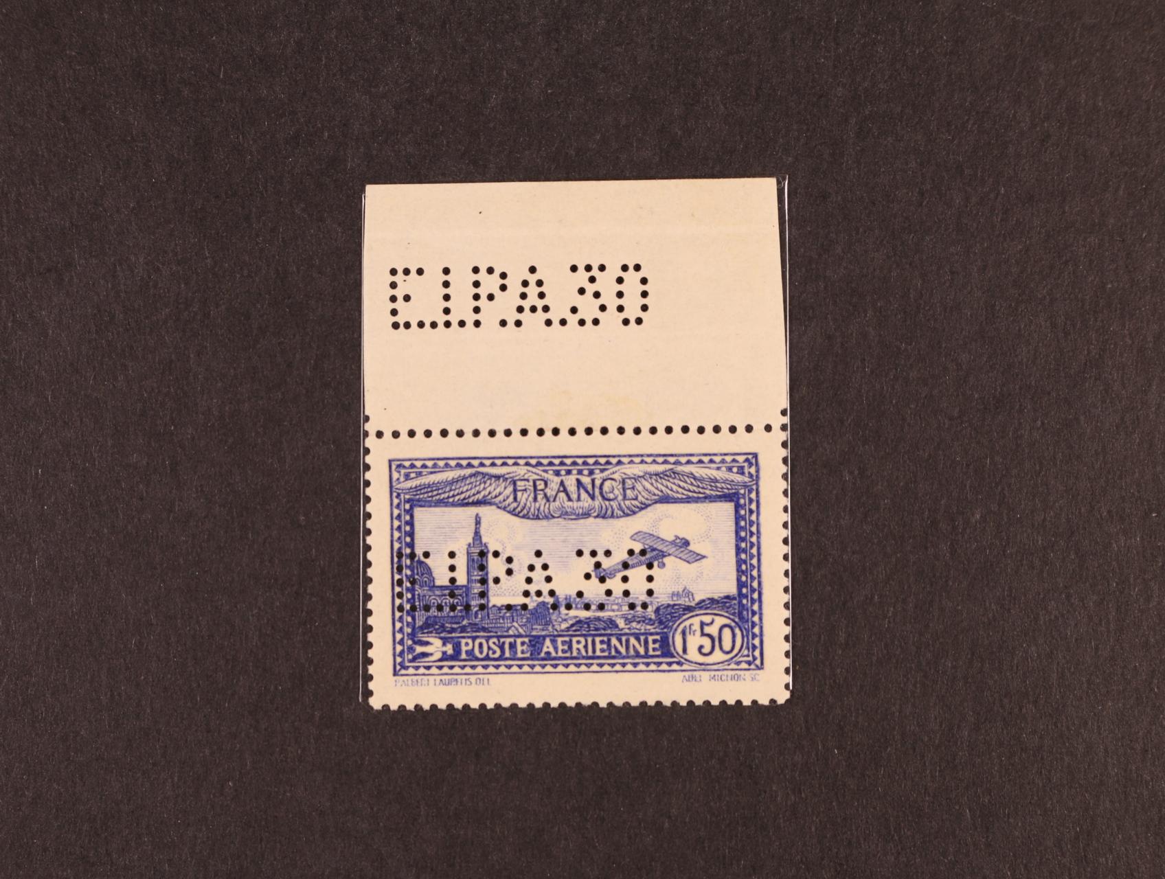 letecká zn. Iver kat. č. 6c modrá s horním okrajen a průpichem E.I.P.A 30 na zn. i na okraji k výstavě let. známek 1930, lux. kvalita, kat. cena 900 EUR +
