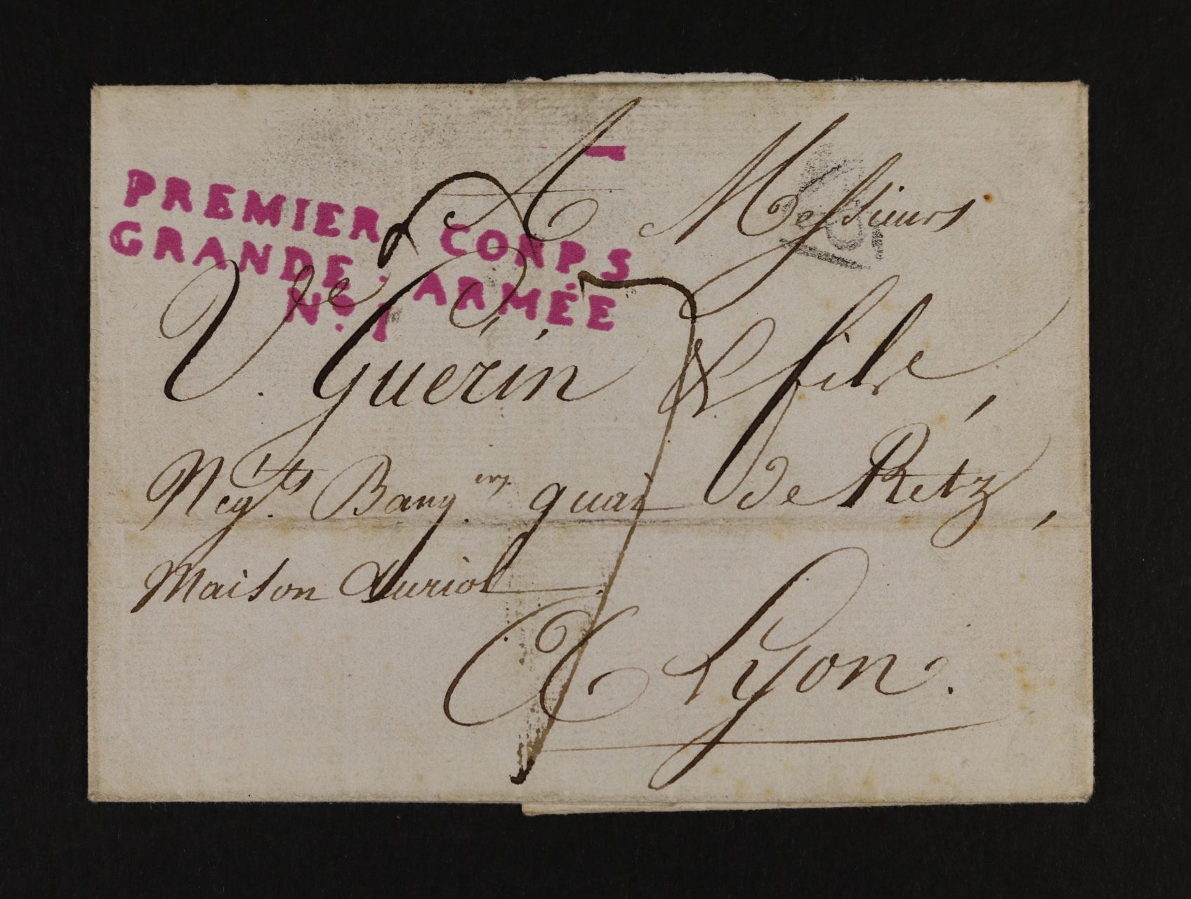 skl. vojenský dopis z r. 1805 z napoleonského tažení na východ s řádkovým červeným raz. PREMIER CORPS GRANDE - ARMÉE NO. 1, bez obsahu