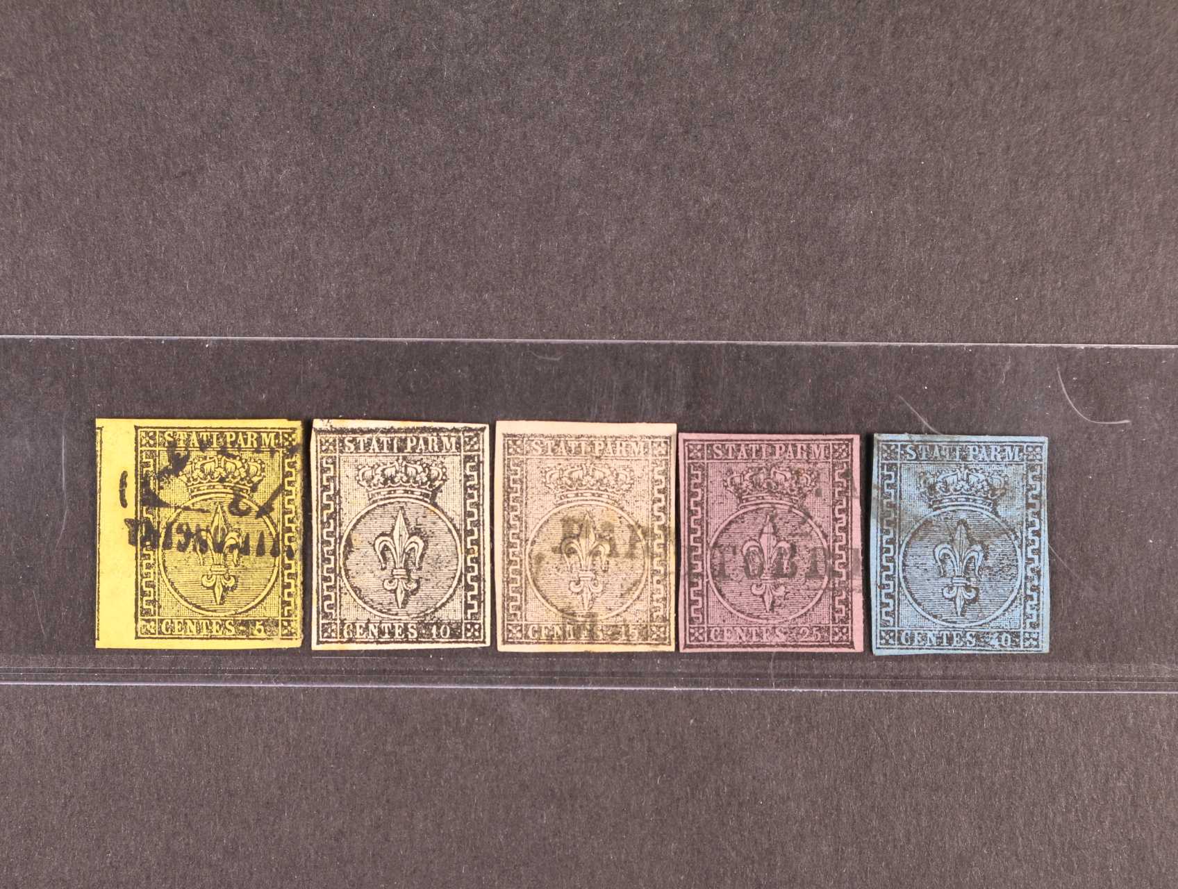 Parma 1852, Mi. č. 1-5 Lilie 5C-40C, kompletní první emise, bezvadné, kat. 640 EUR