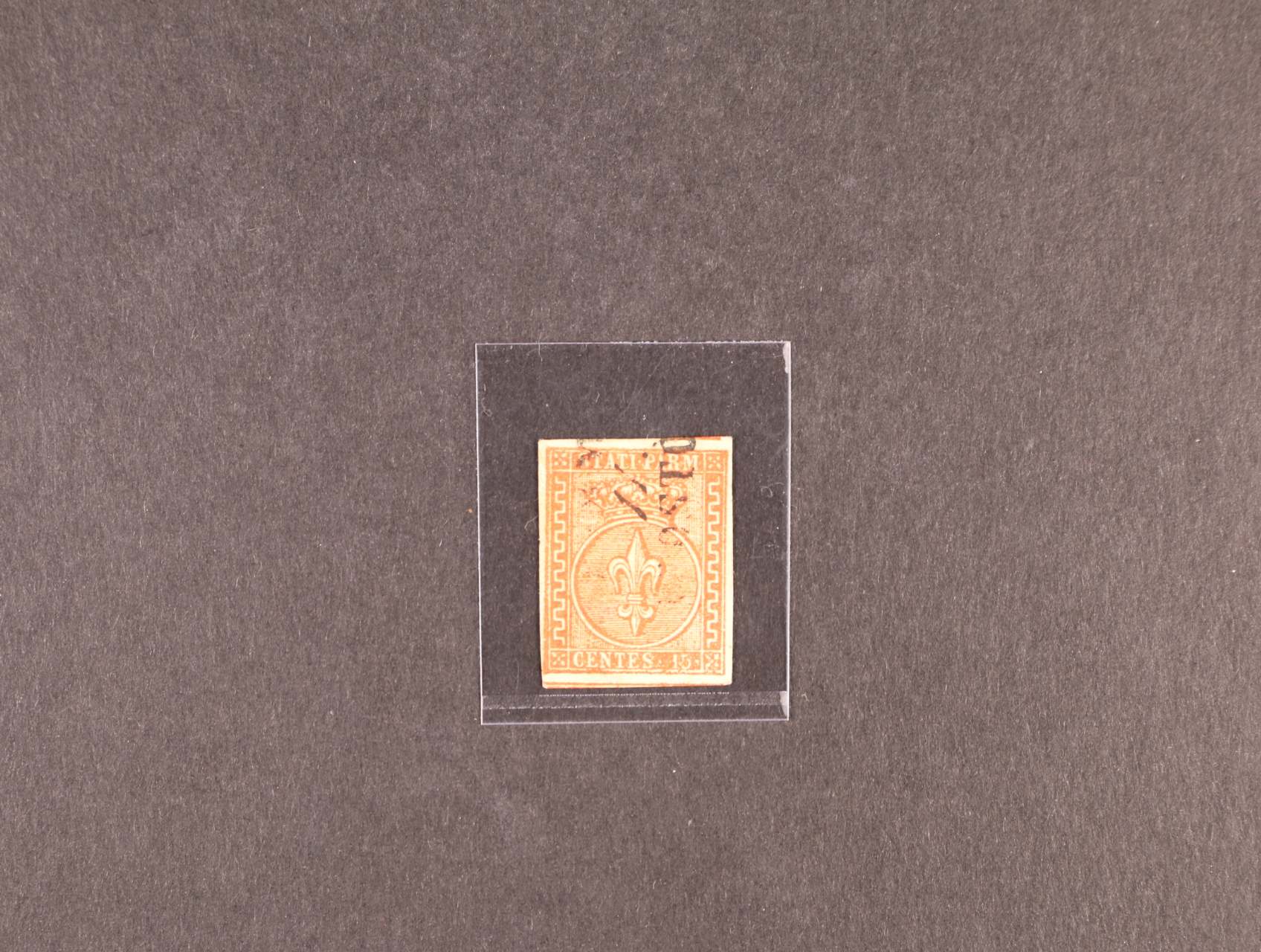 Parma 1857, zn. Mi. č. 7, Lilie 15C rumělková, bezvadná zk. Roig, kat. 130 EU