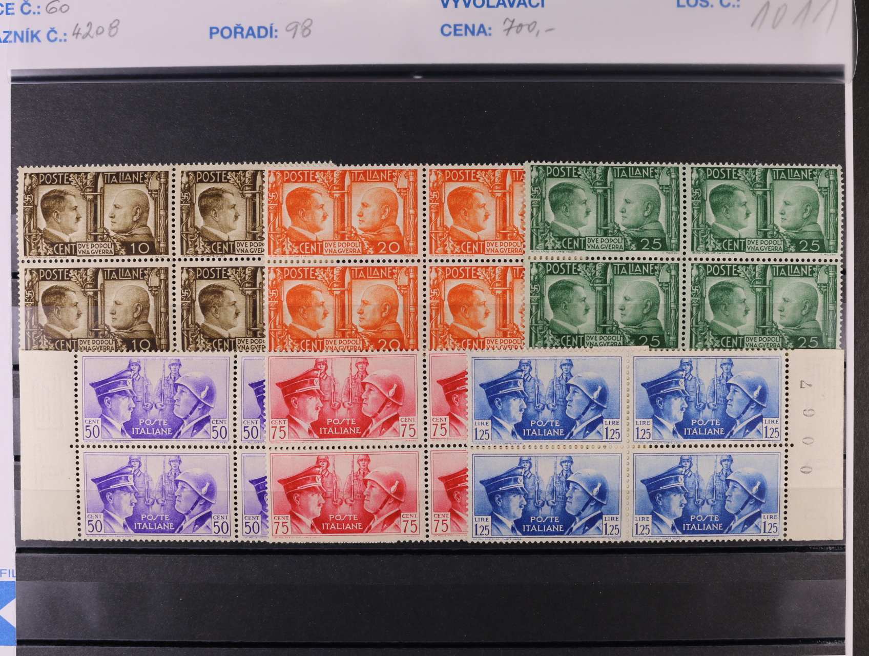 Kolonie Italská Vých. Afrika - zn. Mi. č. 55 - 61, + 63, vše levé spodní roh. čtyřbloky