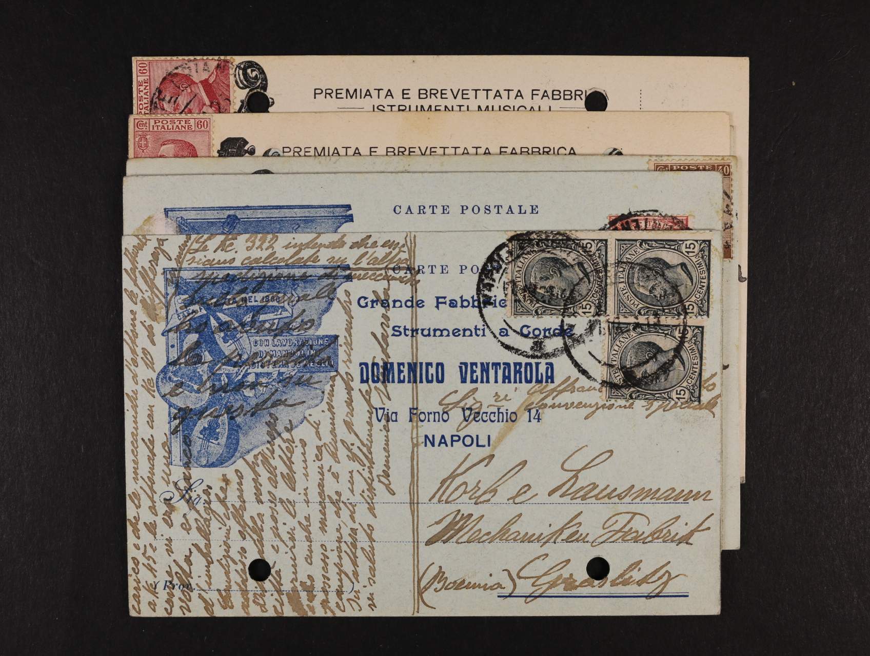 sestava 7 ks KL z let 1921 - 26 s firemním přítiskem, převážně s registr. otvory na okraji, zajímavé
