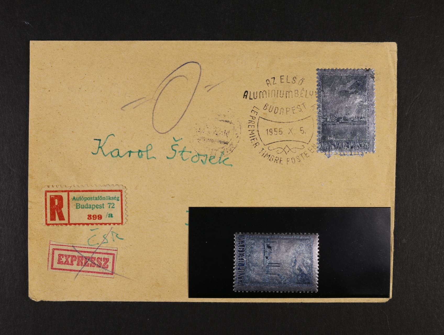 1026 zn. Mi. č. 1449 + R-EXPRES dopis do Bratislavy frank. zn. 1449 s raz 1. dne BUDAPEST 5.10.55 + přích. raz., zajímavé 250