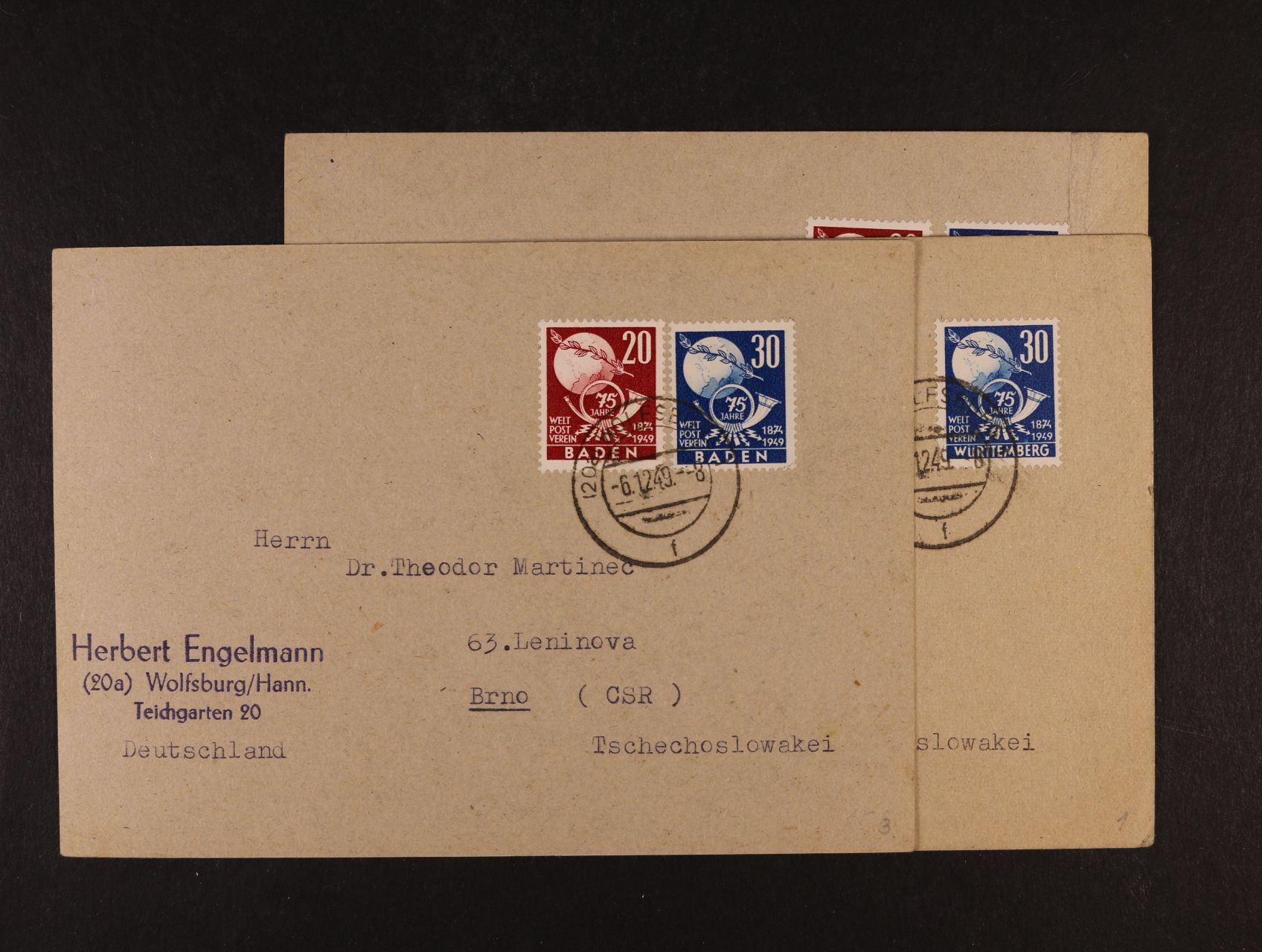 Spol. vydání Britská zóna - dopis do ČSR frank. zn. Mi. č. 108 - 10, pod. raz. WOLFSBURG 8.9.49