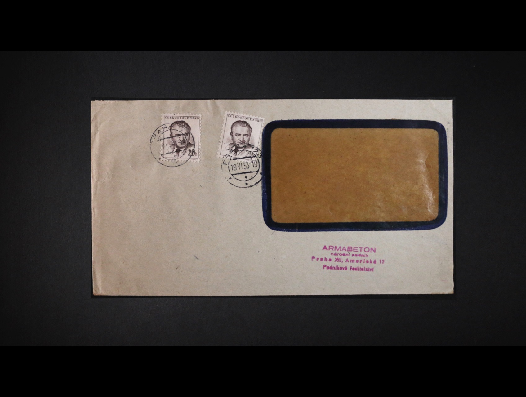firemní obálka frank. zn. č. 733 (2x) s raz. PRAHA 123 19.6.53 - 1. den vydání po měnové reformě