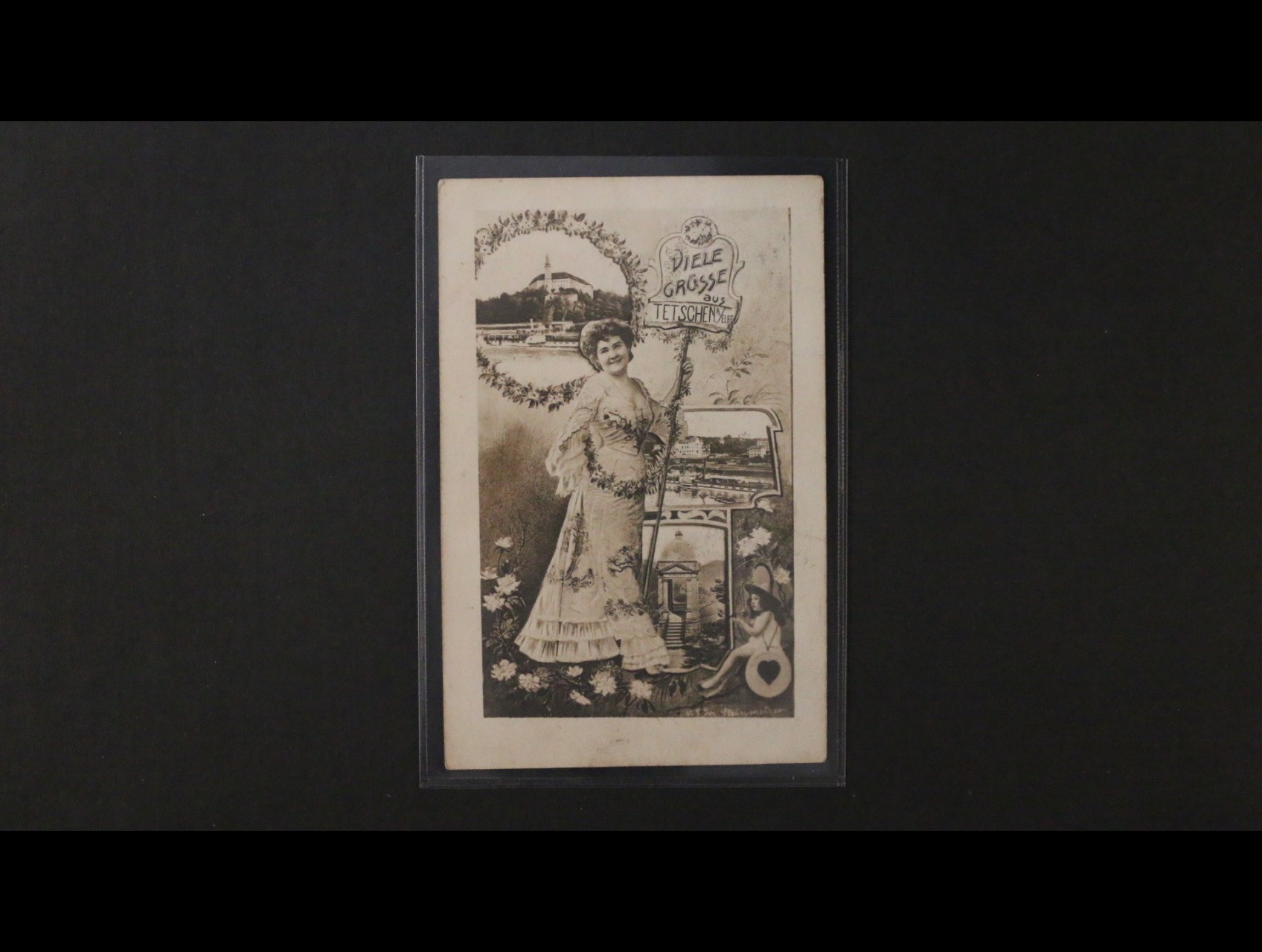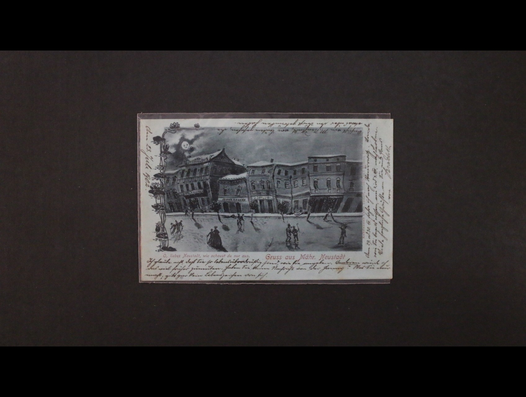 Jevišovice - sestava 13 ks různých jednobar. litograf. koláží a pohlednic