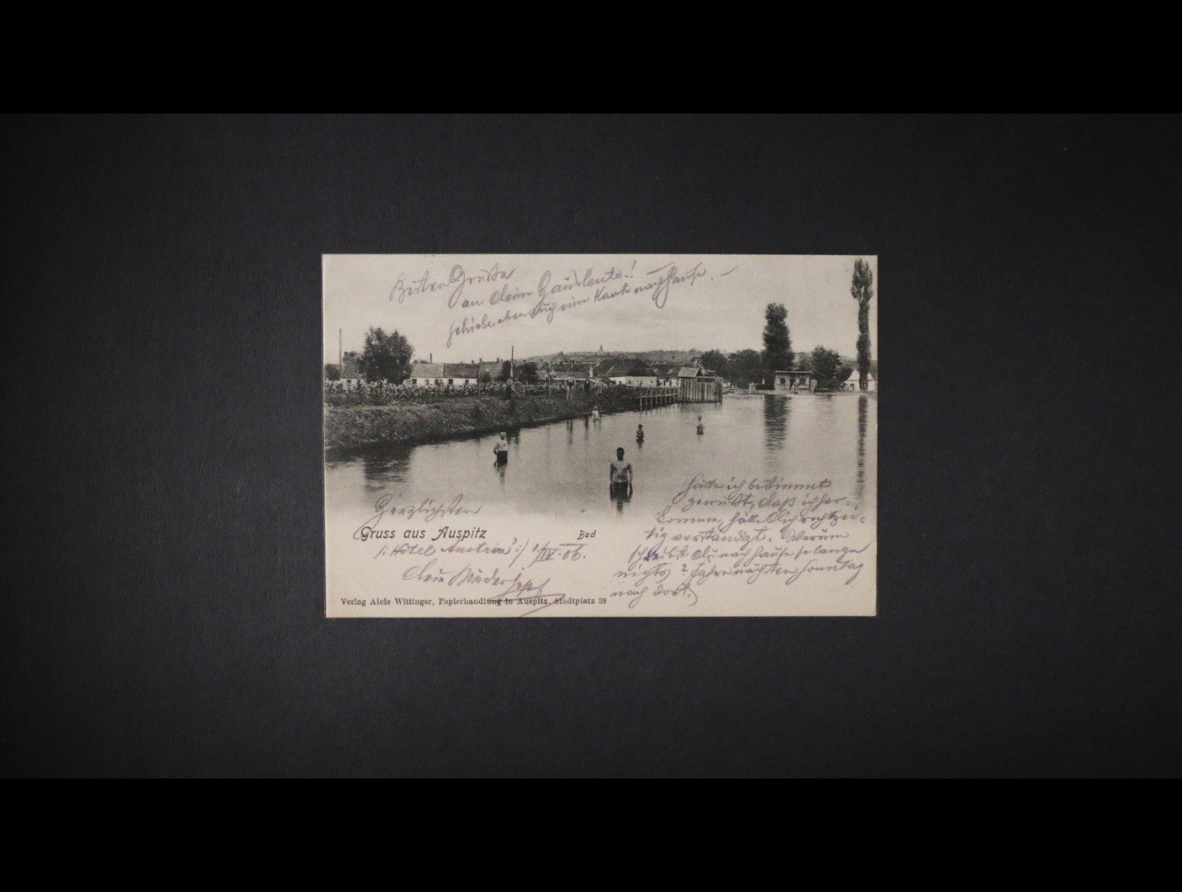 Hustopeče Gruss aus Auspitz - jednobar. litografie použitá 1906, velmi dobrá kvalita, zajímavé