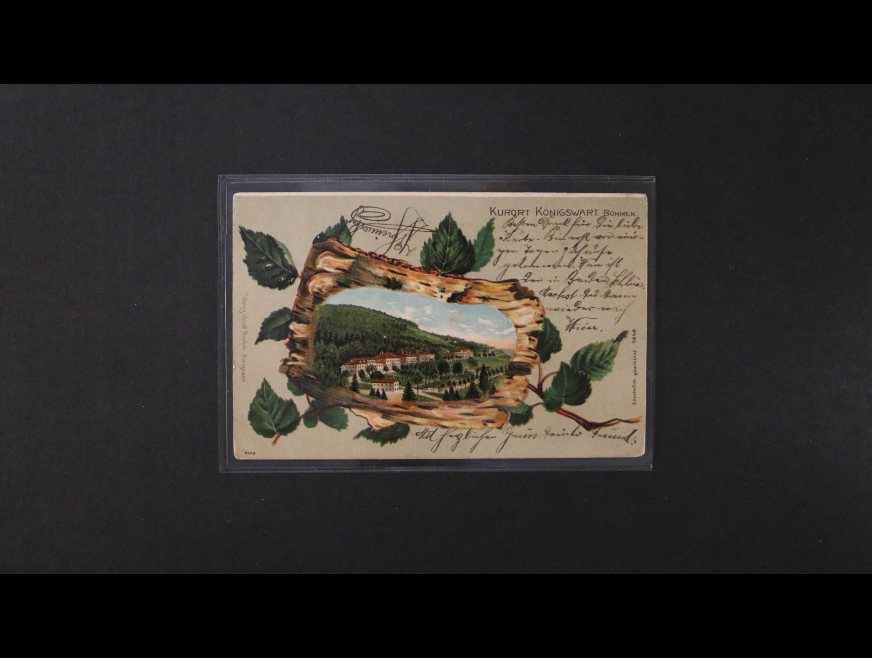 Kynžvart Lázně okr. Cheb - barevná litografická koláž, částečně tlačená, prošlá
