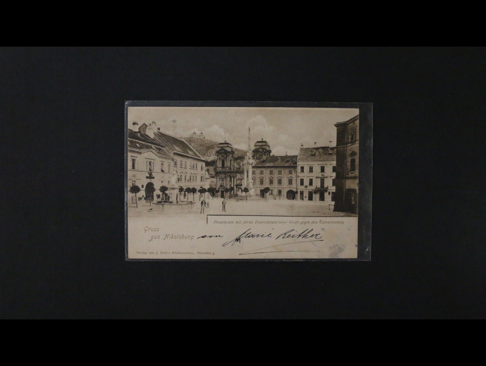 Mikulov - Gruss aus Nikolsburg - jednobar. litografie, dl. adresa, použitá 1899, velmi dobrá kvalita