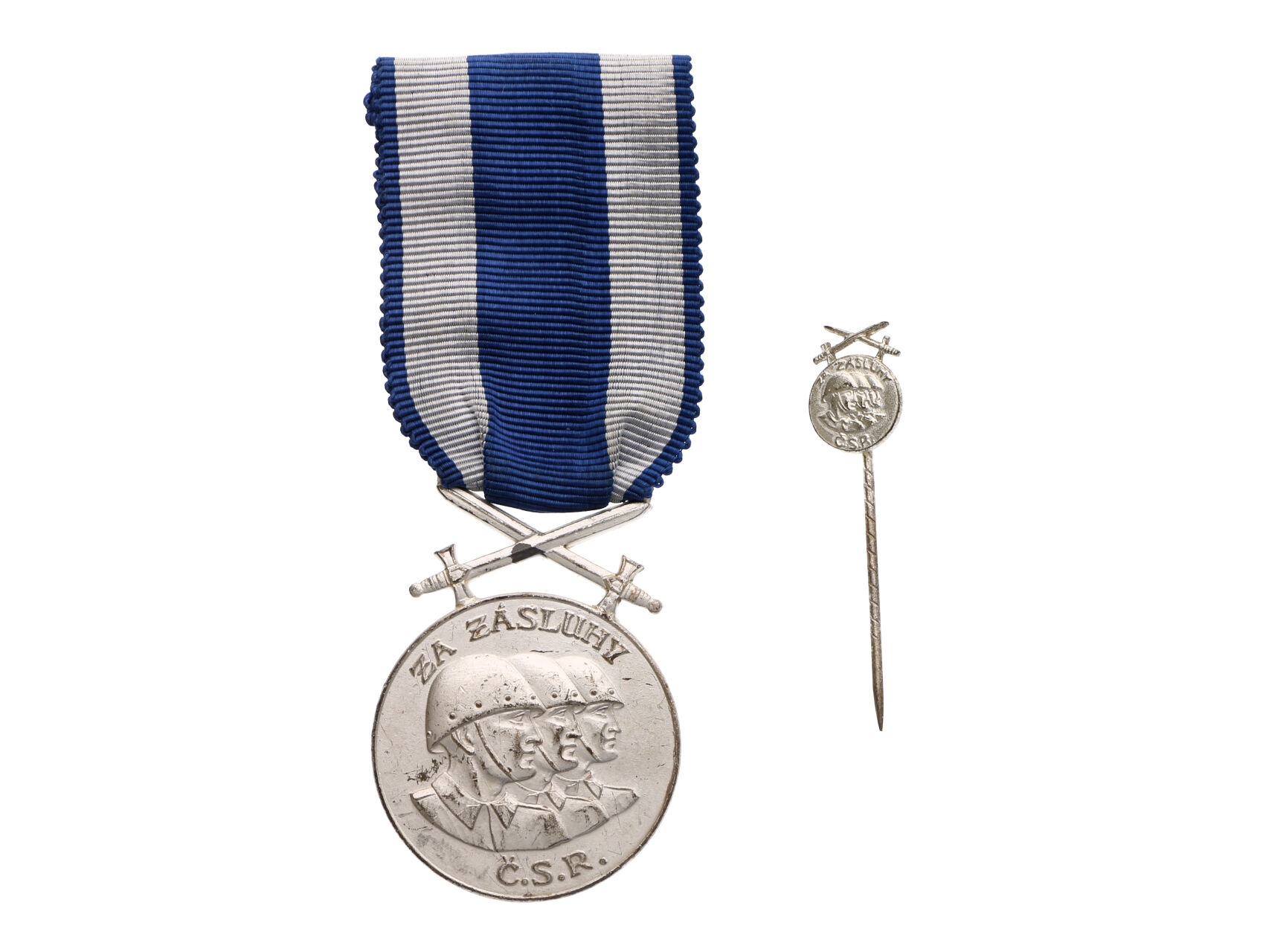 587 ČS. vojenská medaile za zásluhy, stříbrná, k tomu miniatura a originální etue, VM13, N19b 700