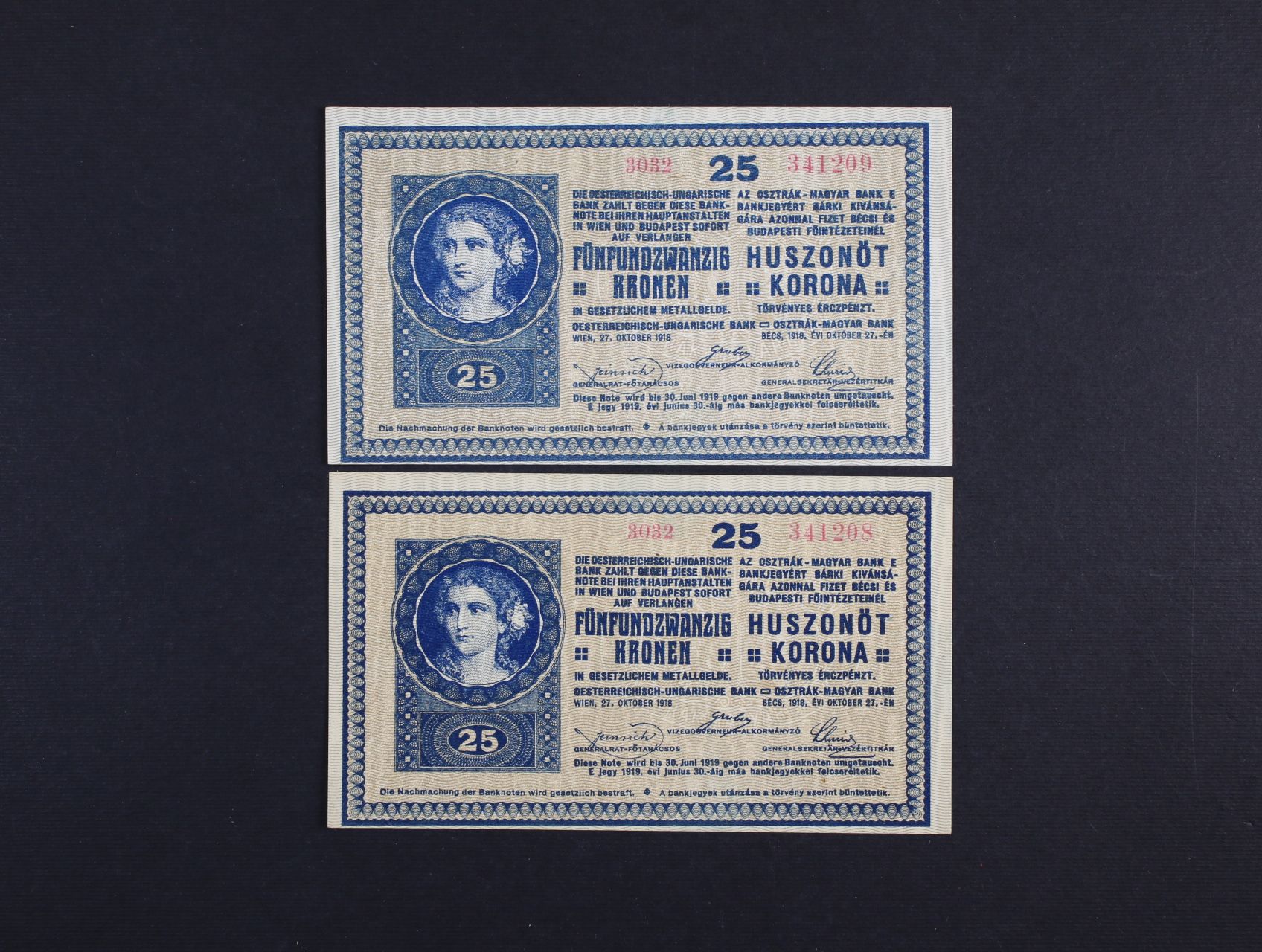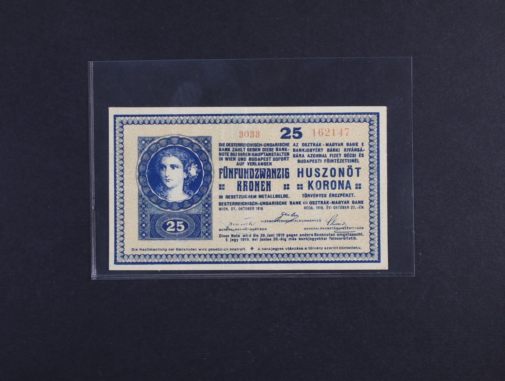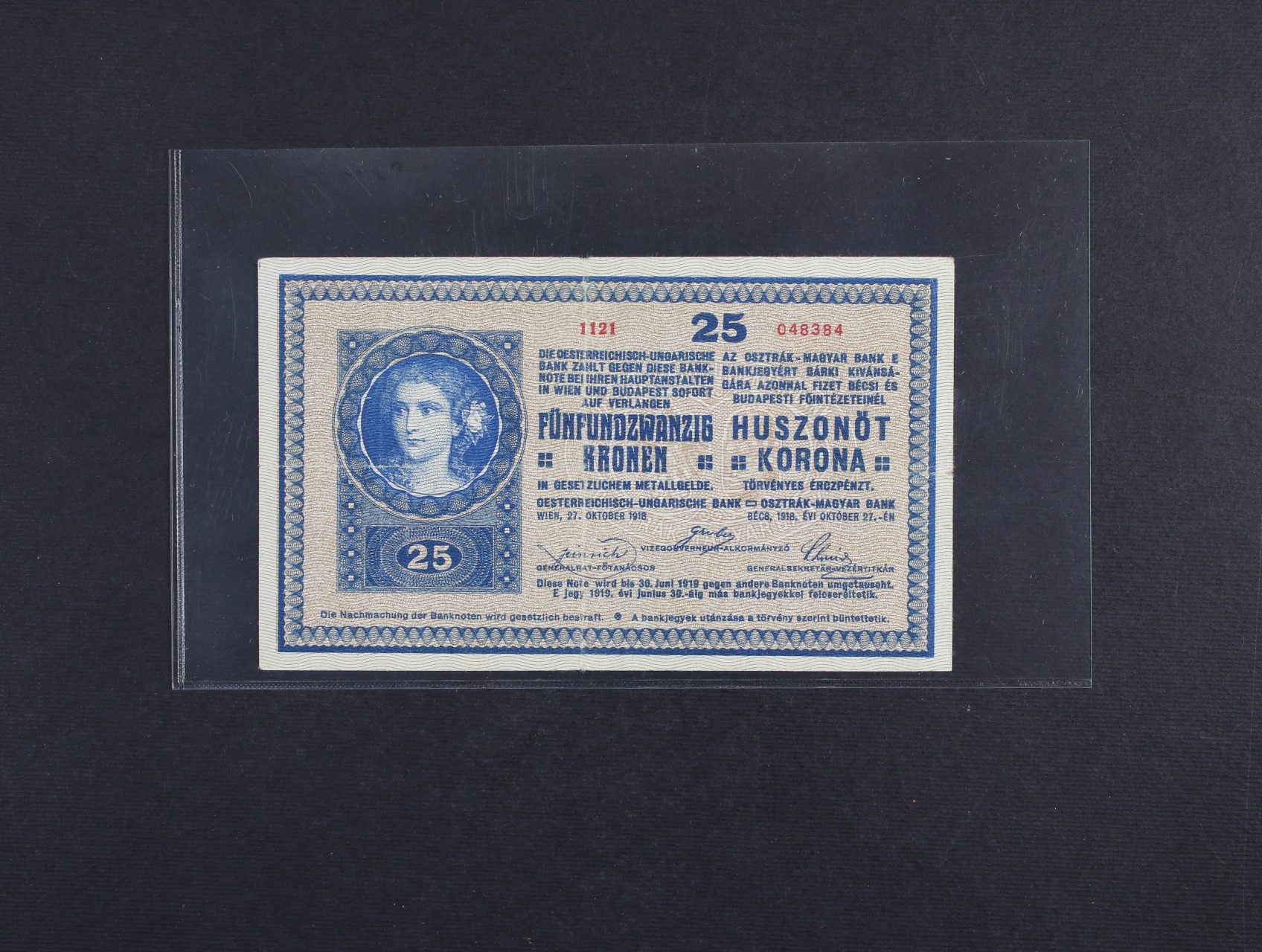 670 25 K 27.10.1918 série 1121, sériové číslo 1 s patkou, Ri. 170, Pi. 23 2600