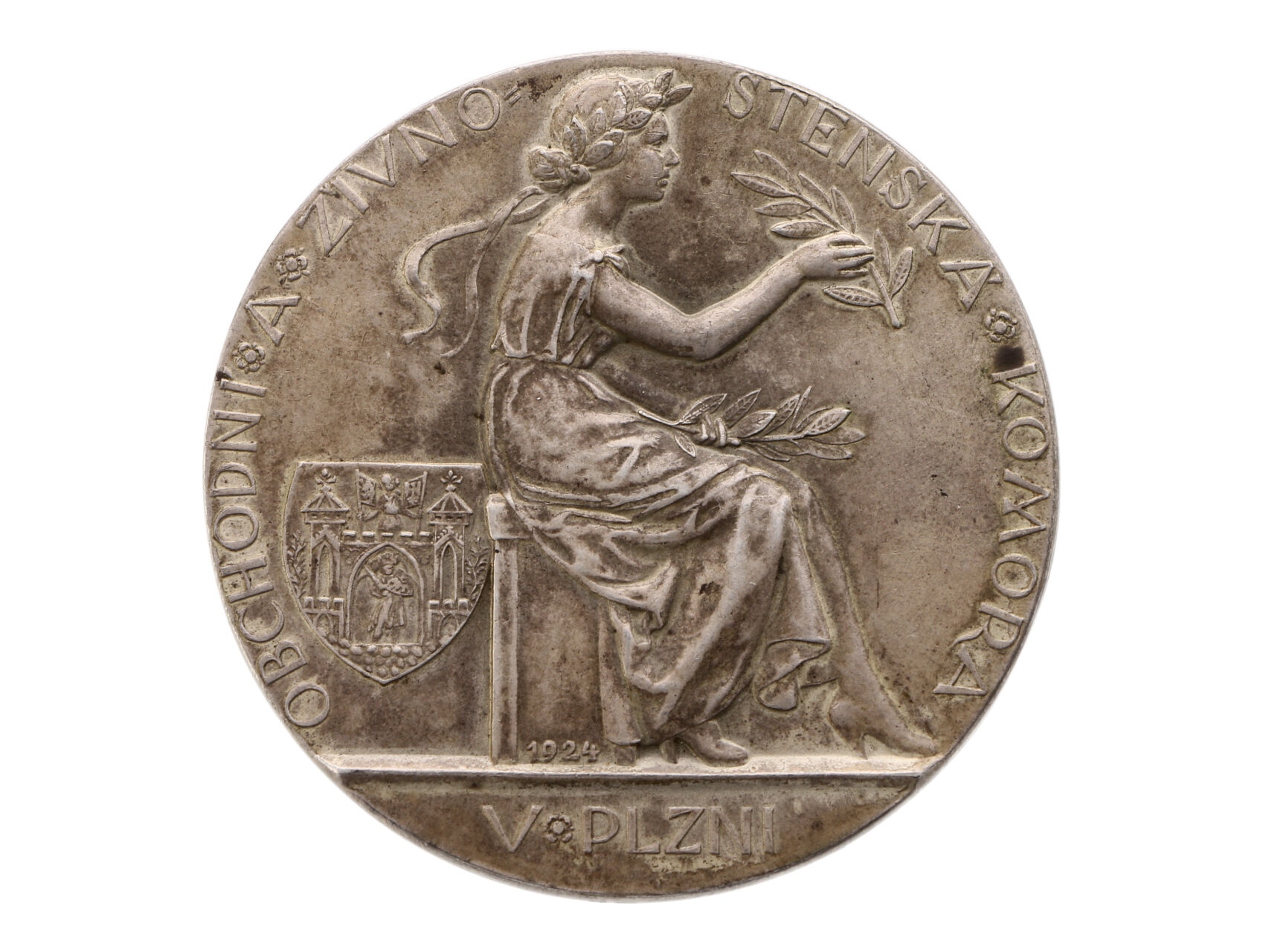 Šejnost Josef 1878-1941 - AR medaile Obchodní a živnostenská komora v Plzni 1924, Ag 750/1000, průměr 50 mm, Bo. 127c