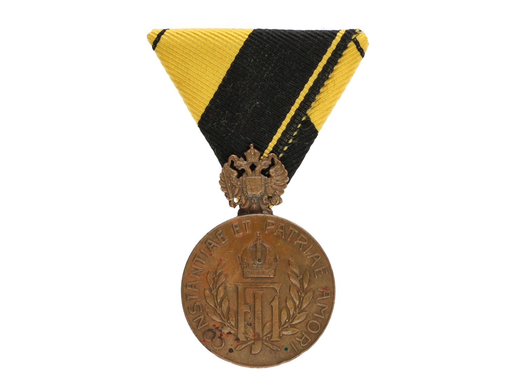 Čestná medaile Za mnoholeté členství v domobraneckých sborech, 1908 za 40 let, OCTO LUSTRA, novodobá stuha, Marko 384, hranky