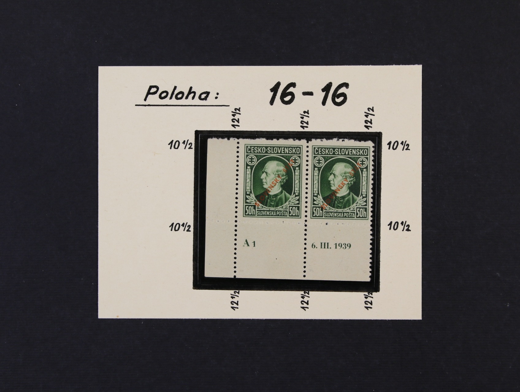 zn. č. 23 C - levá spodní roh. dvoupáska, kombinace 16 - 16, zk. Slovenský filatelista, Ptačovský