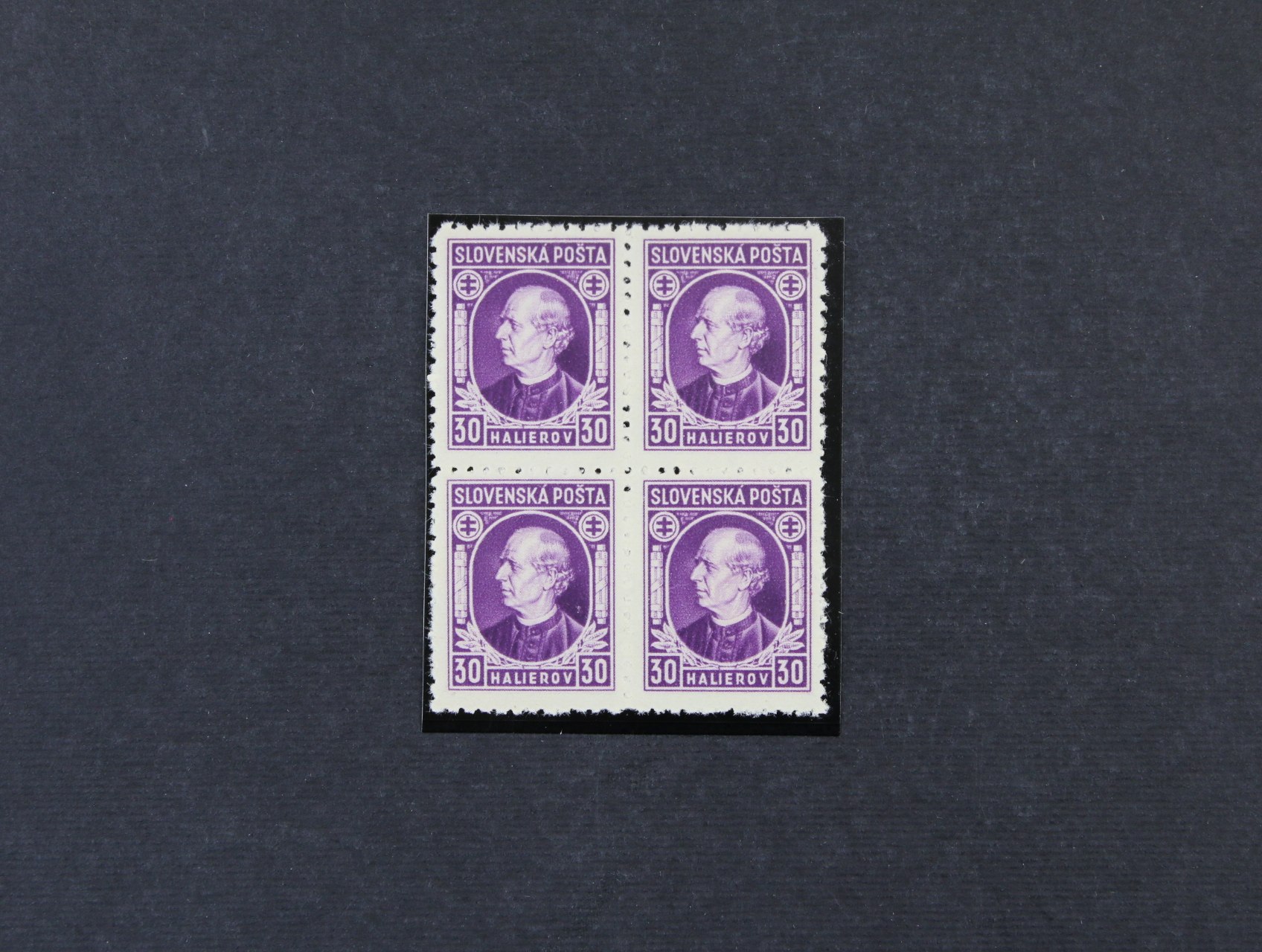 zn. č. 28 B 30h Hlinka bez průsvitky s ŘZ 10 1/2, ve čtyřbloku, zk. Synek, opravený lep, k prohlédnutí