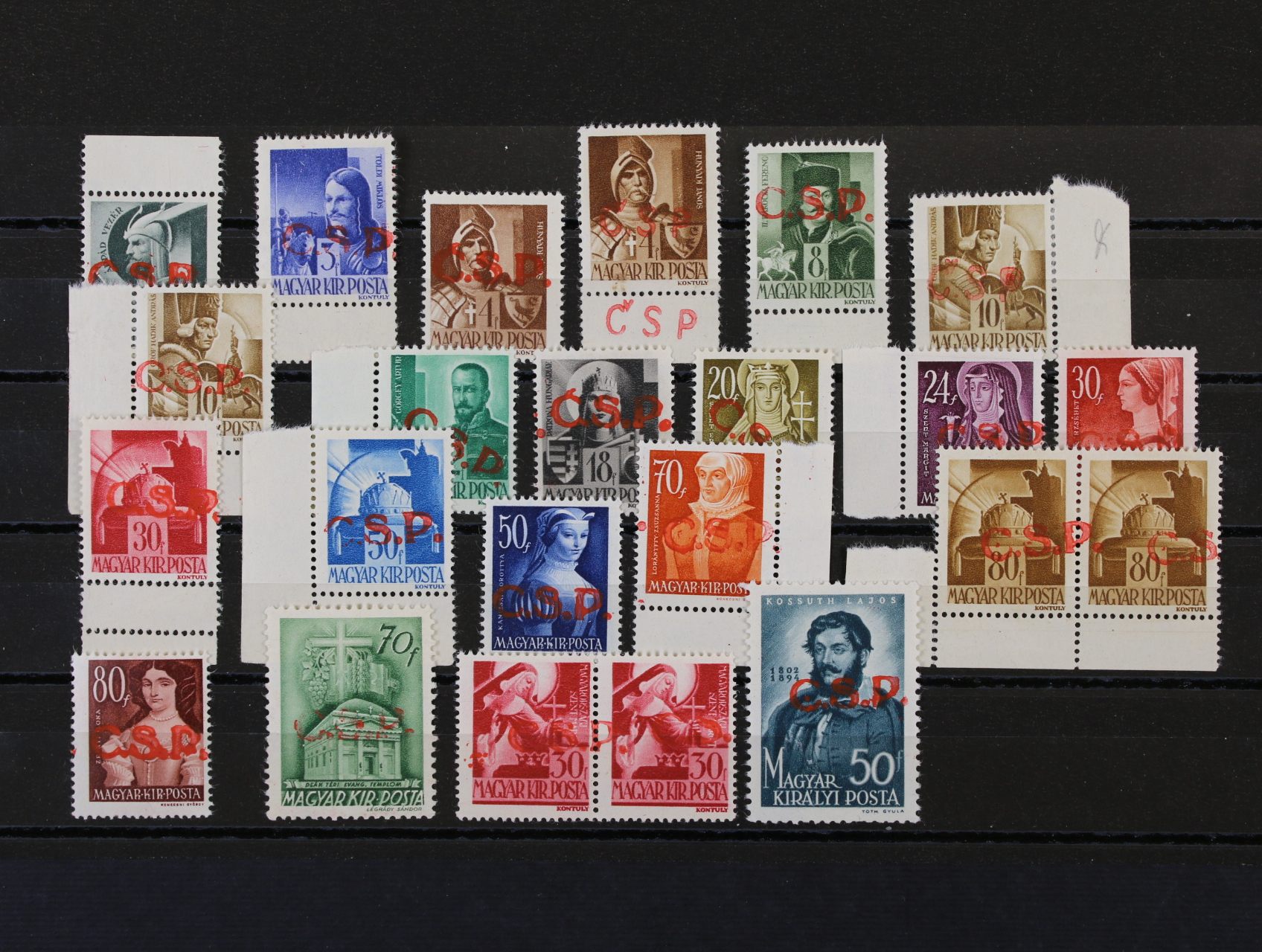 Rožňava - sestava 18 ks maď. zn. s černým přetiskem ČSP, zajímavé