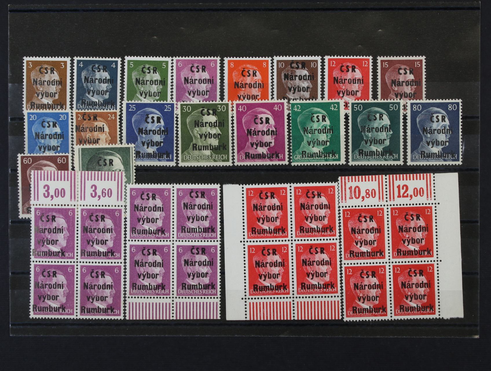 Rumburk - sestava 18ks německých zn. A. H. + navíc hodnoty 6pf a 12pf ve čtyřblocích