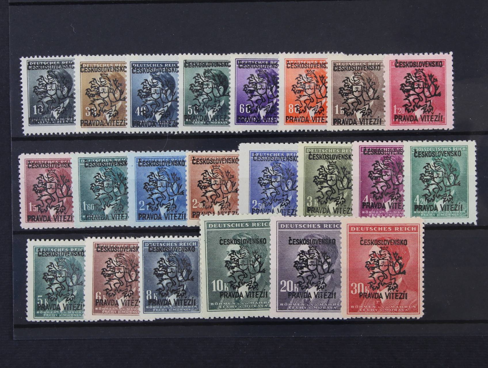Říčany u Prahy - sestava 22ks protektor. zn. A. H., bez jedné zn. kompletní série